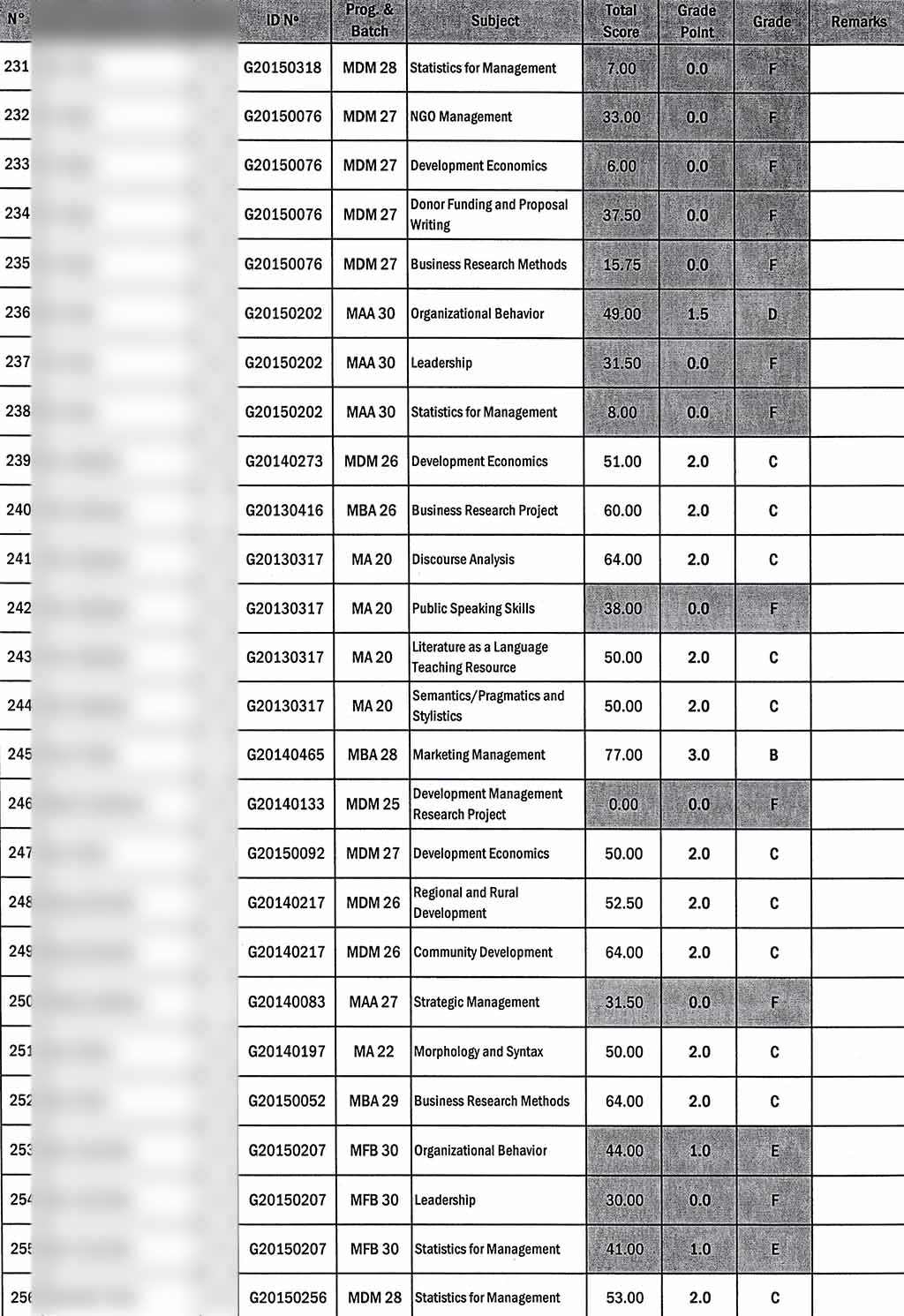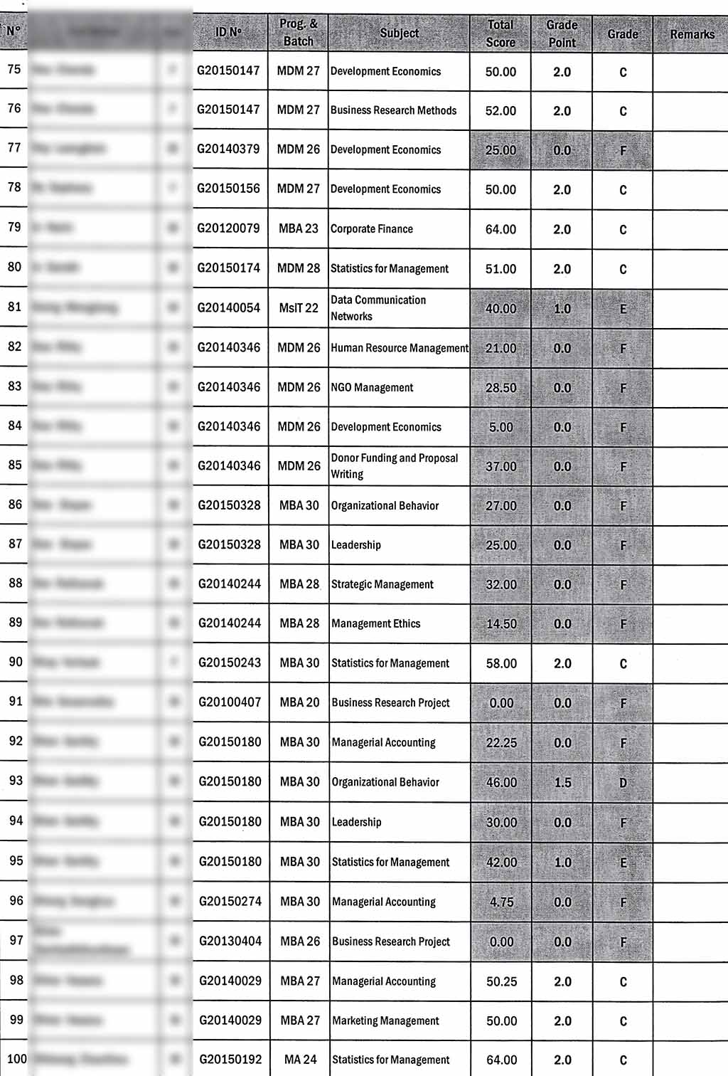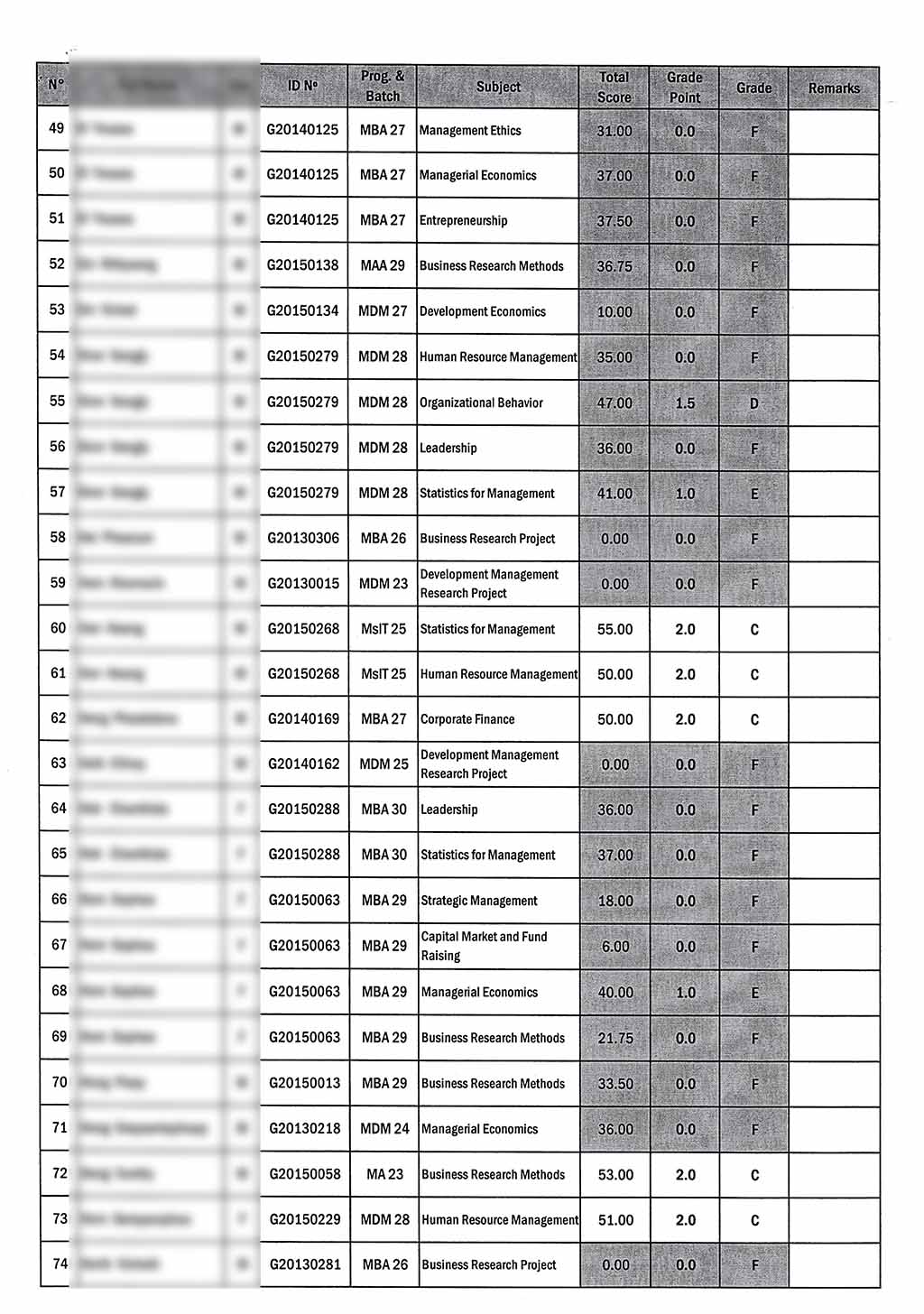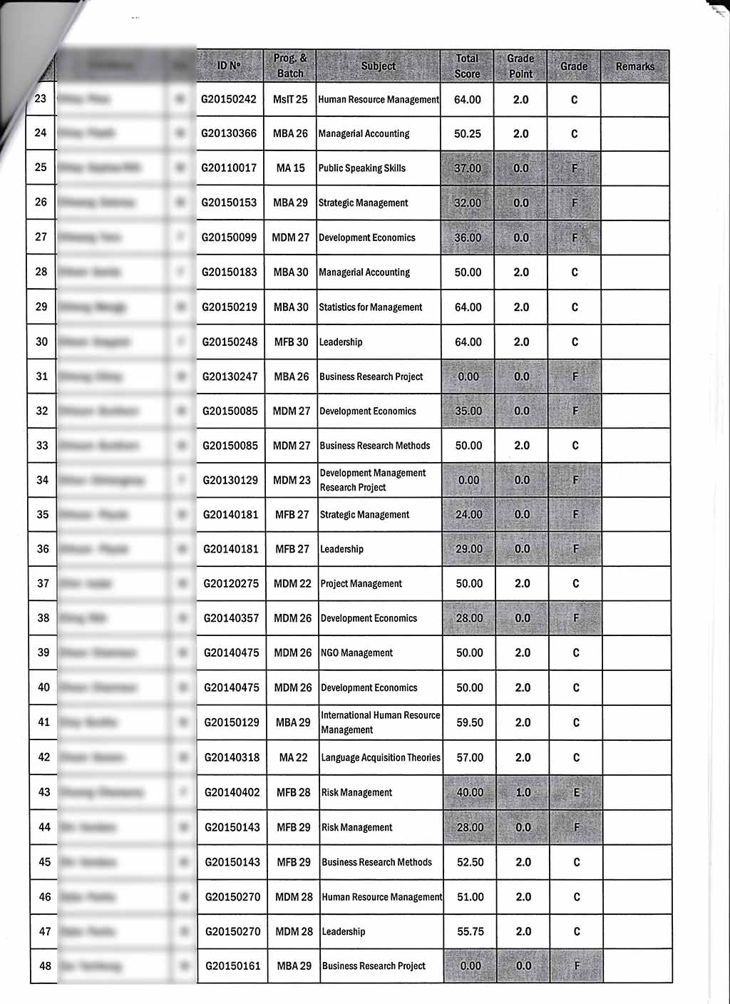The result of the supplementary examination, Evening and Weekend Class Academic Year 2015-2016 (Semester 1)