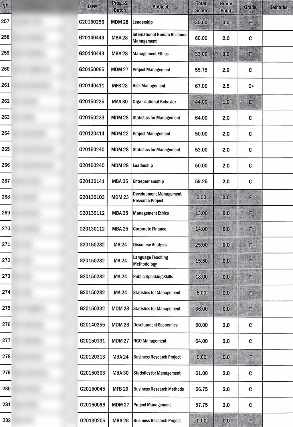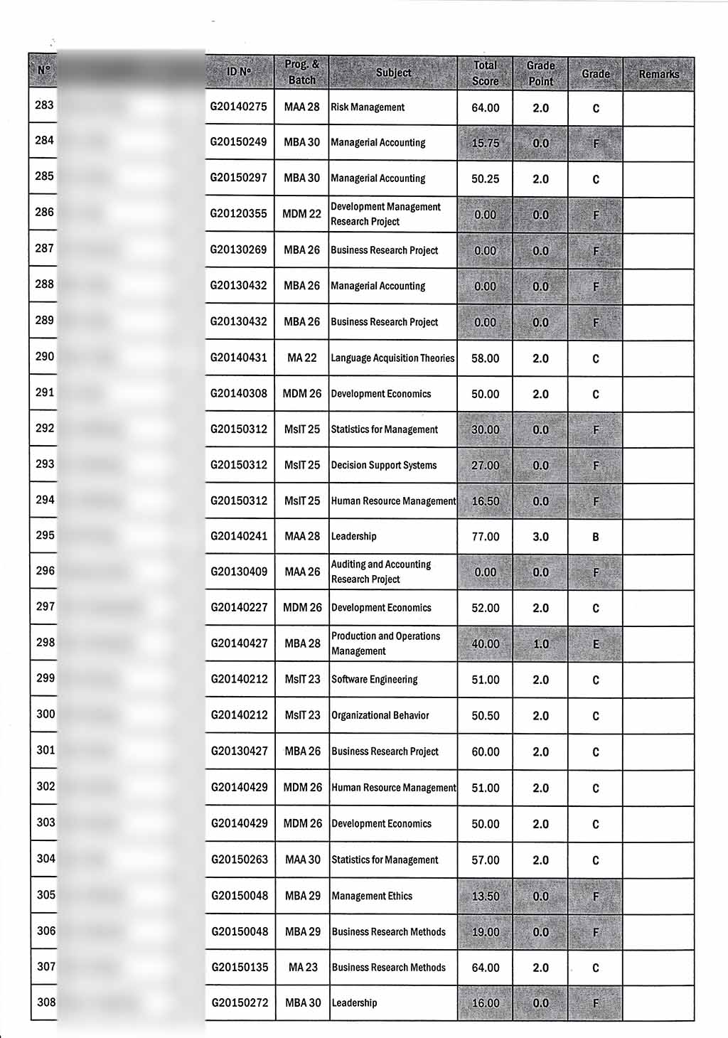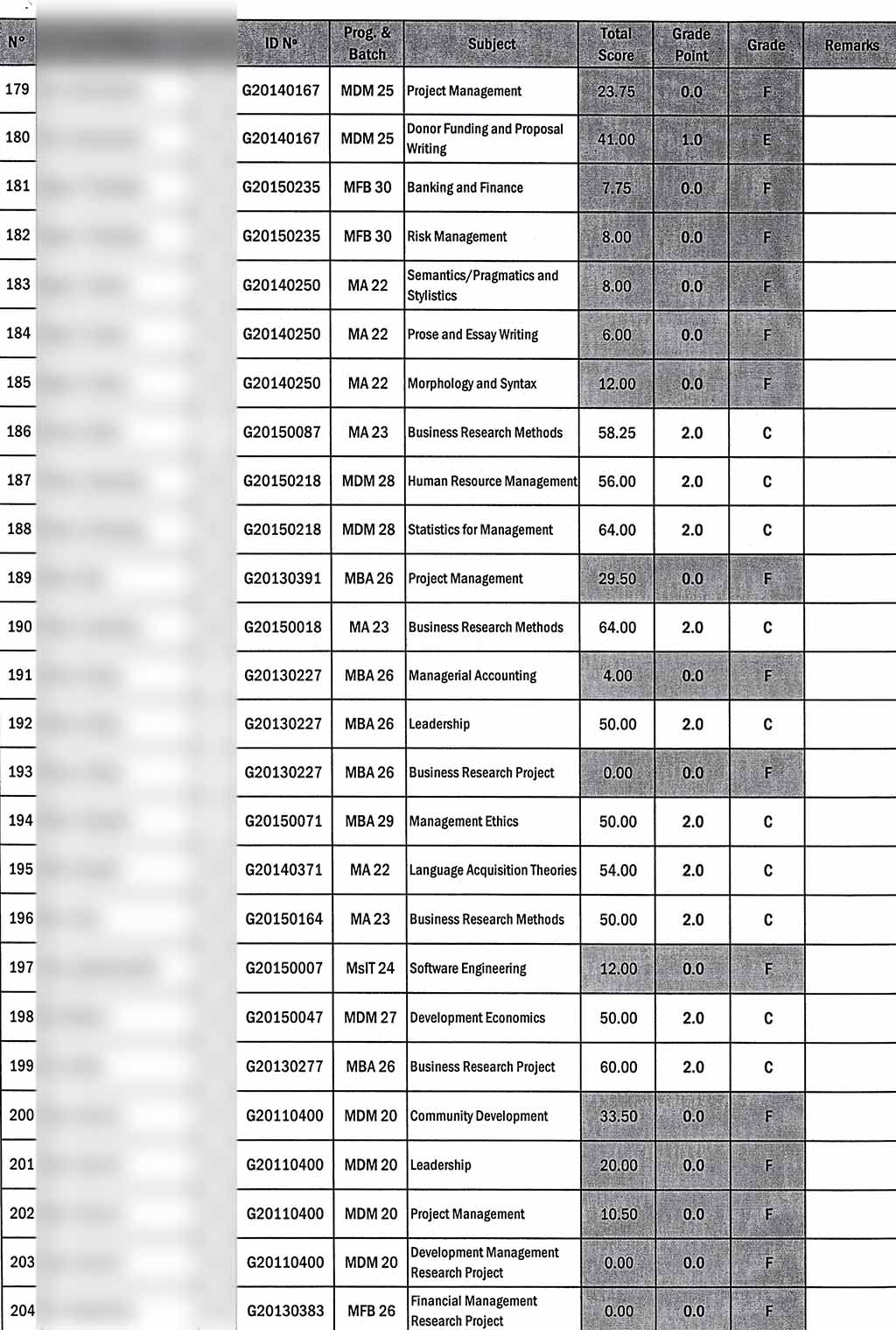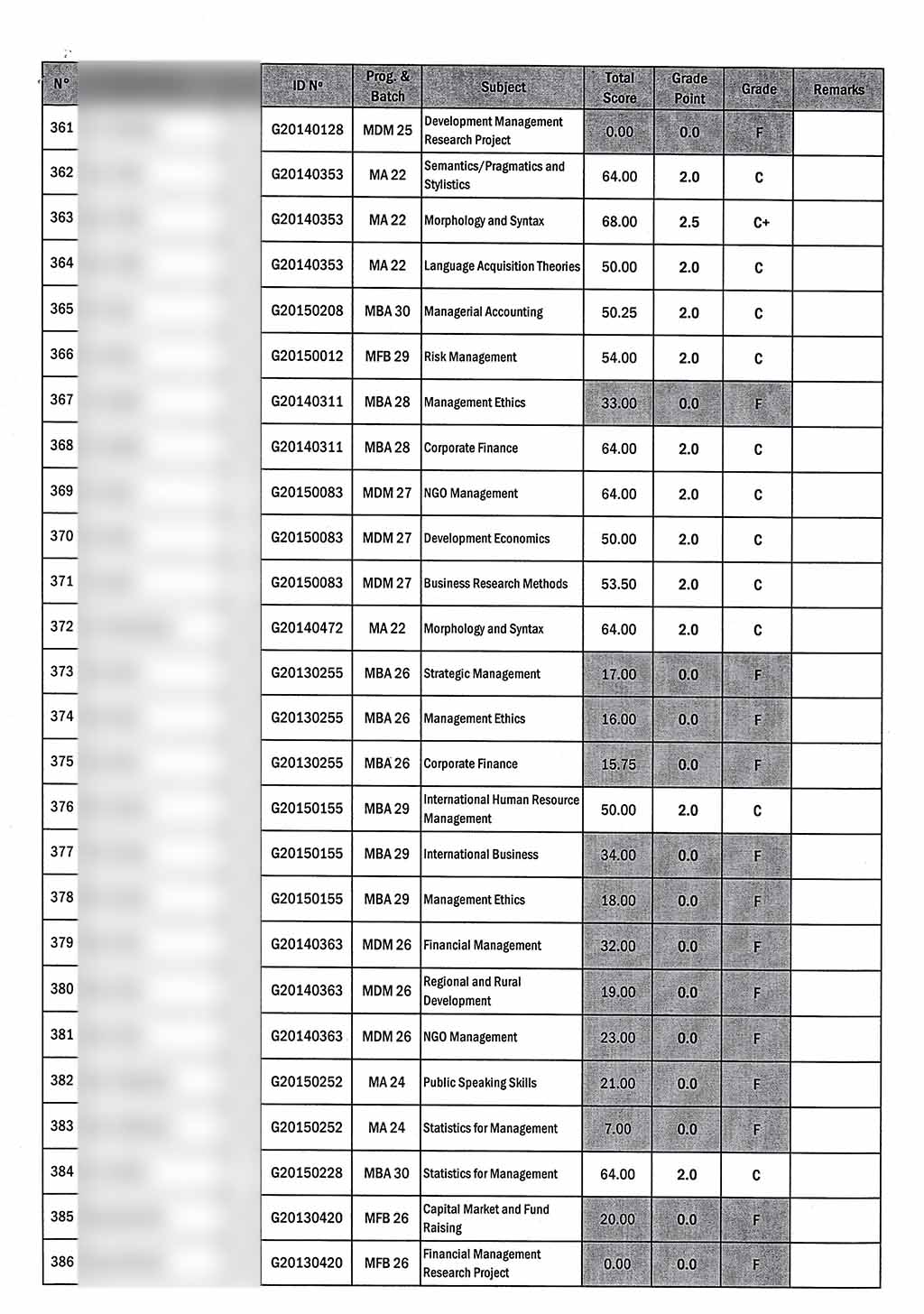 The result of the supplementary examination, Evening and Weekend Class Academic Year 2015-2016 (Semester 1)