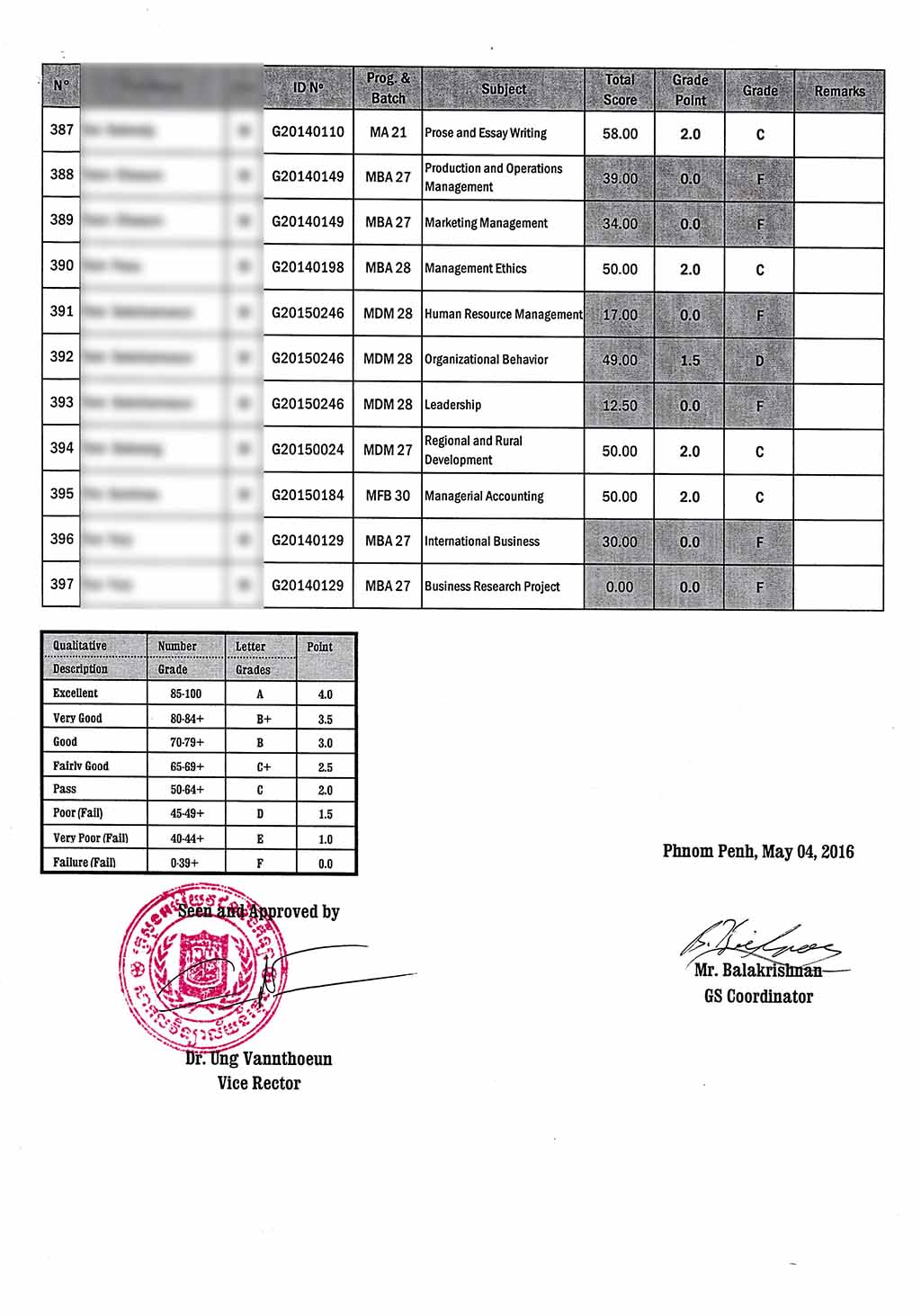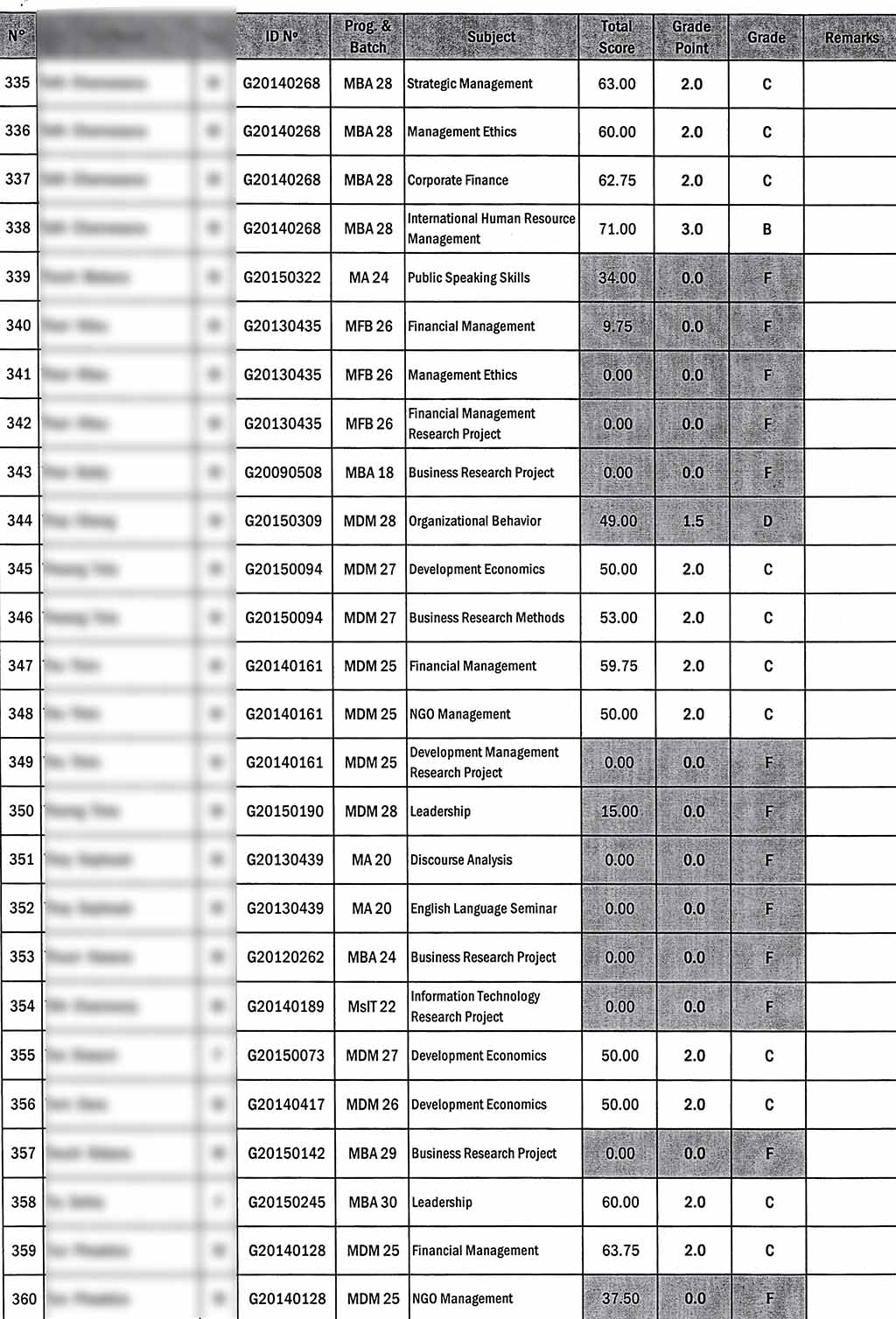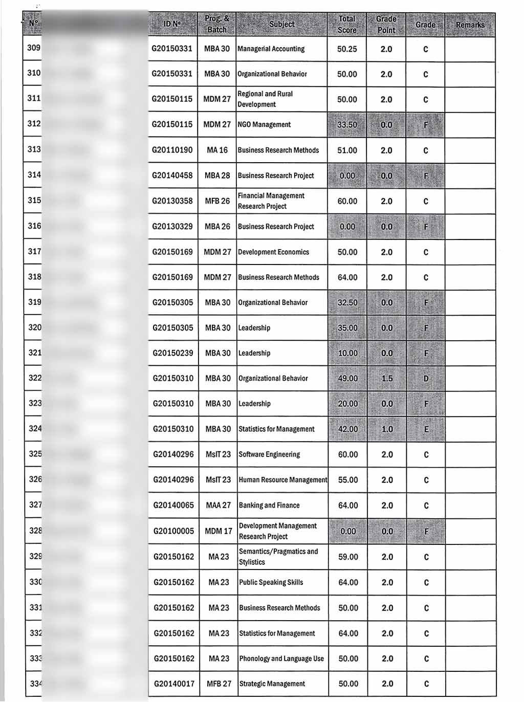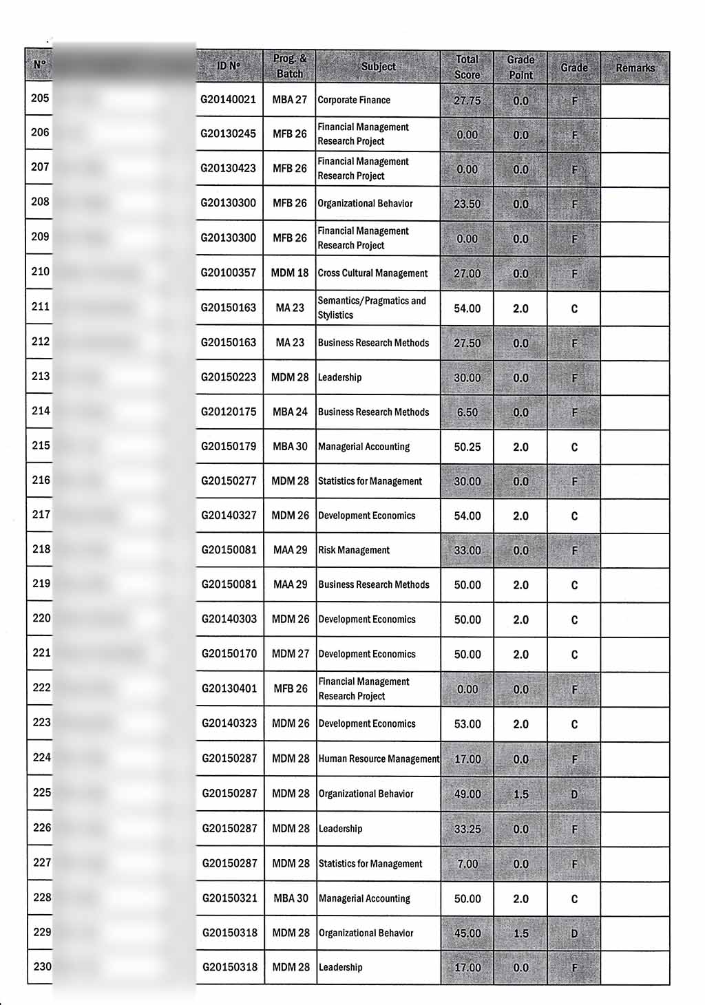 The result of the supplementary examination, Evening and Weekend Class Academic Year 2015-2016 (Semester 1)