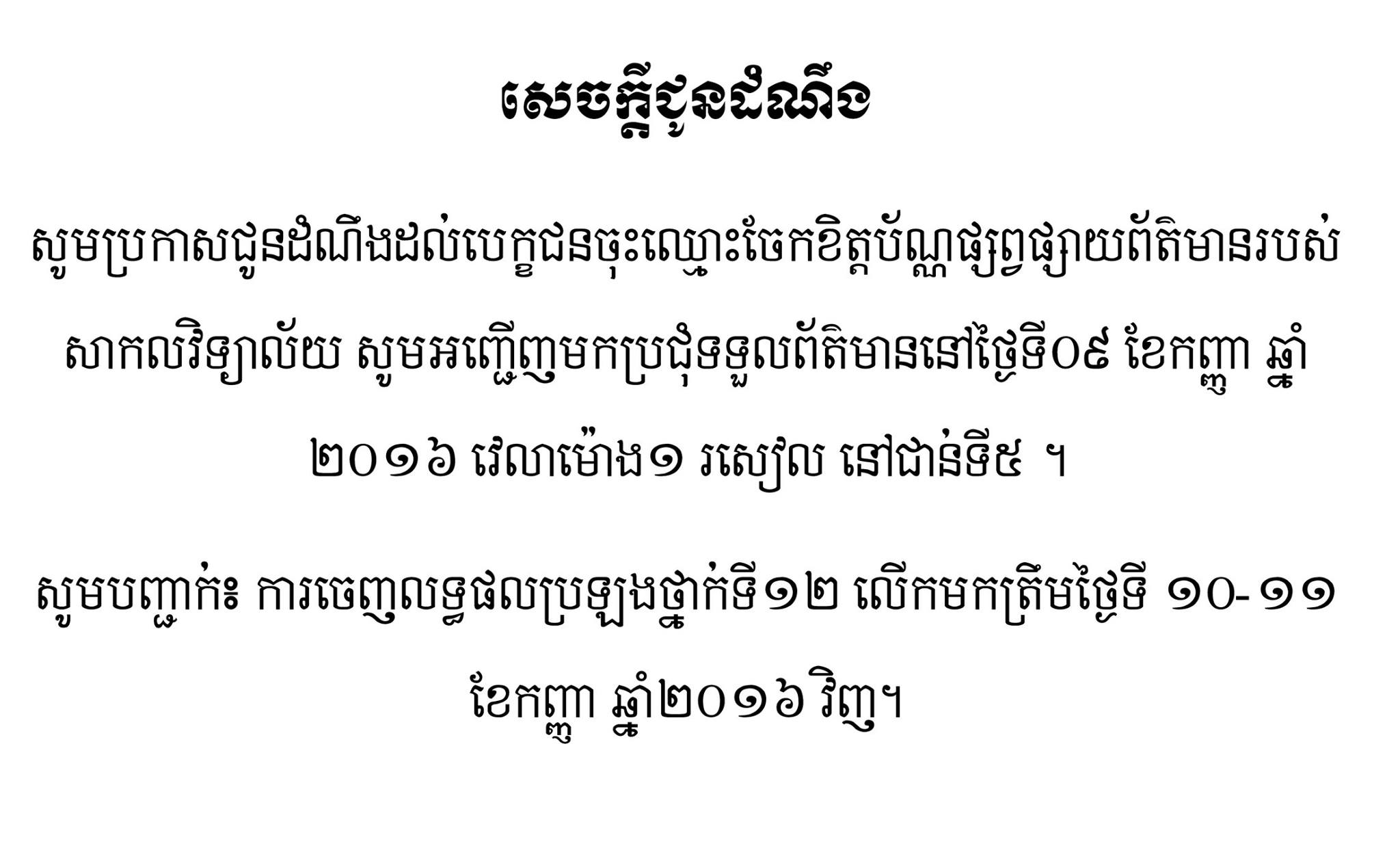 សេចក្តីជូនដំណឹង