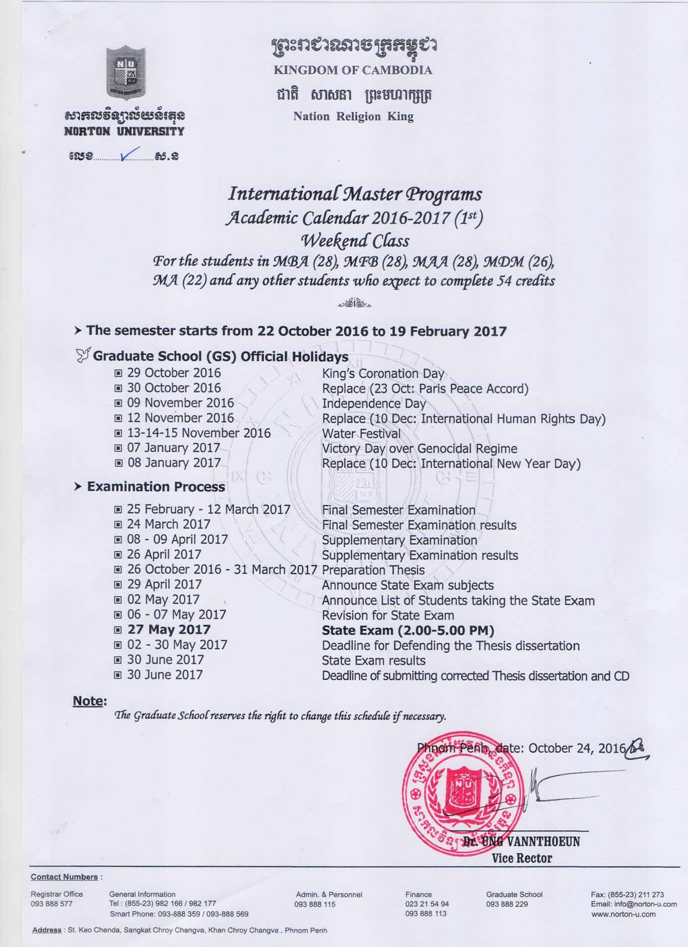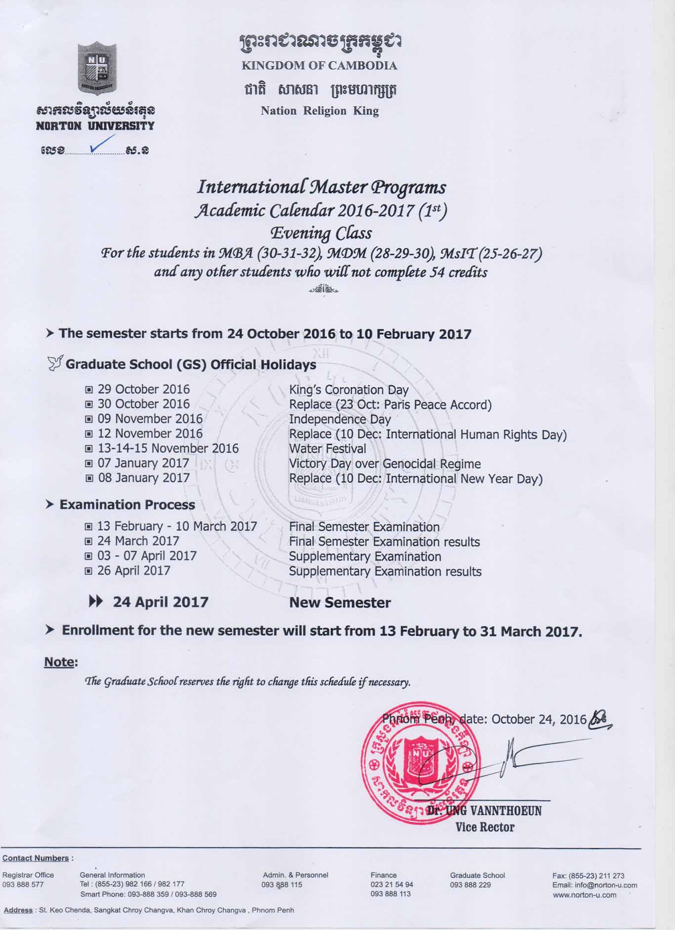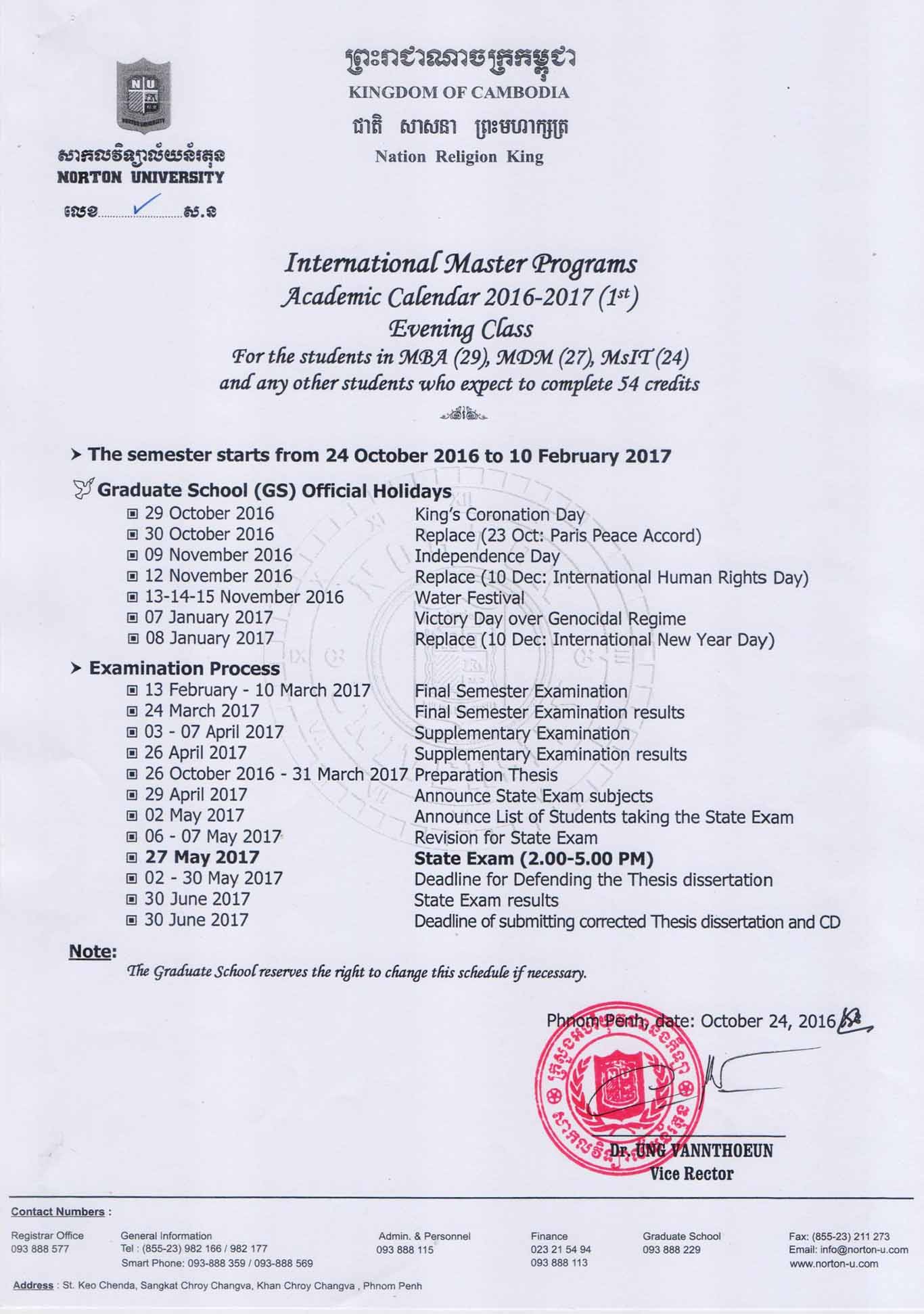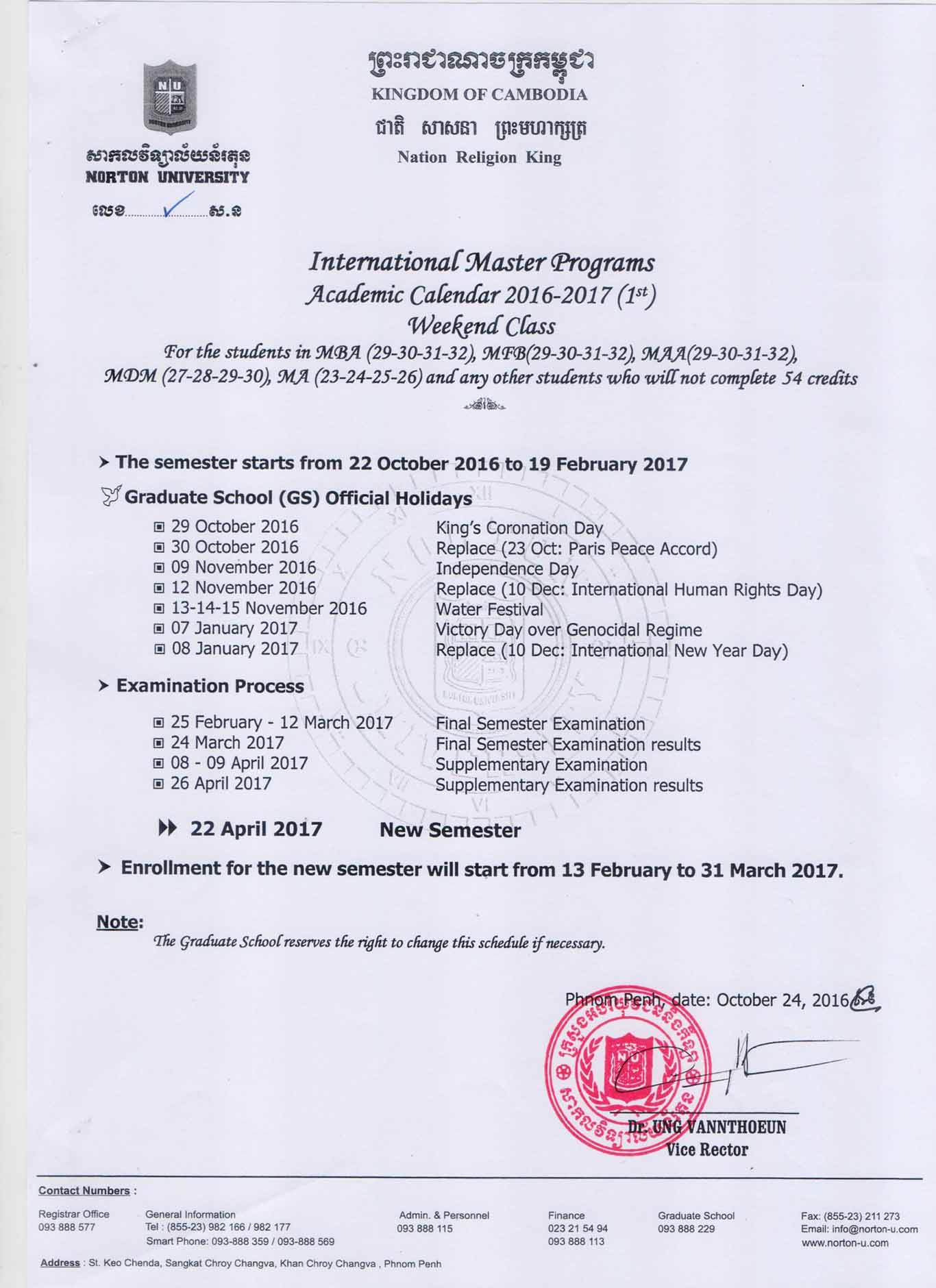 Academic Calendar 2016-2017 (1st) Evening and Weekend Classes