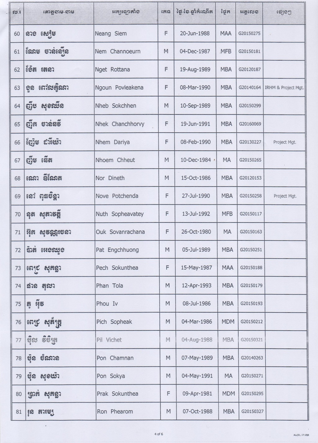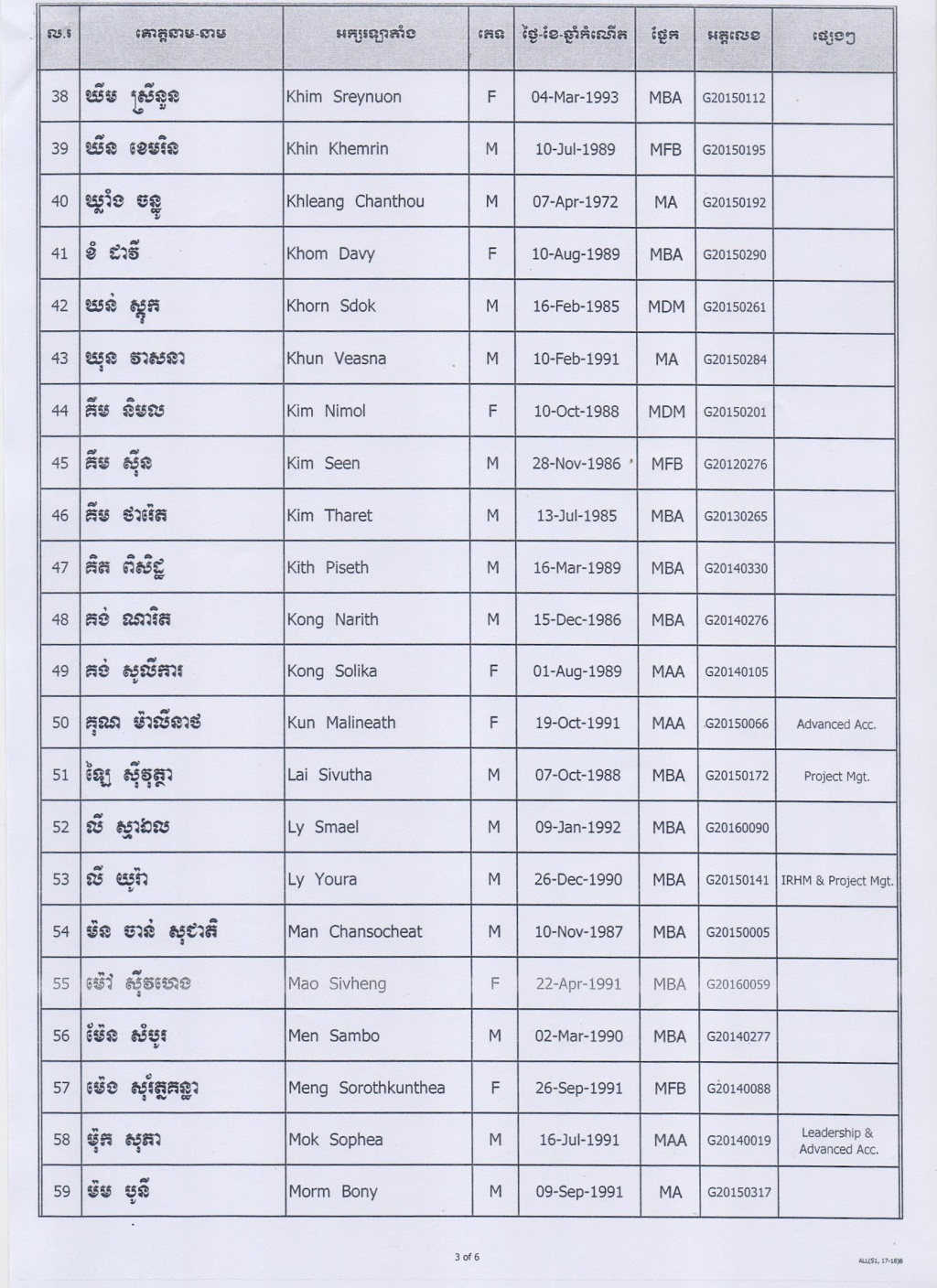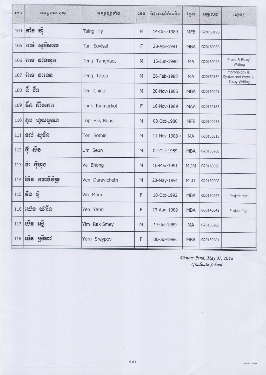 បញ្ជីរាយនាមនិស្សិតដែលត្រូវបានអនុញ្ញាតឲ្យប្រឡងបញ្ចប់ (State Exam) ថ្នាក់បរិញ្ញាបត្រជាន់ខ្ពស់ ឆ្នាំសិក្សាស ២០១៧-២០១៨