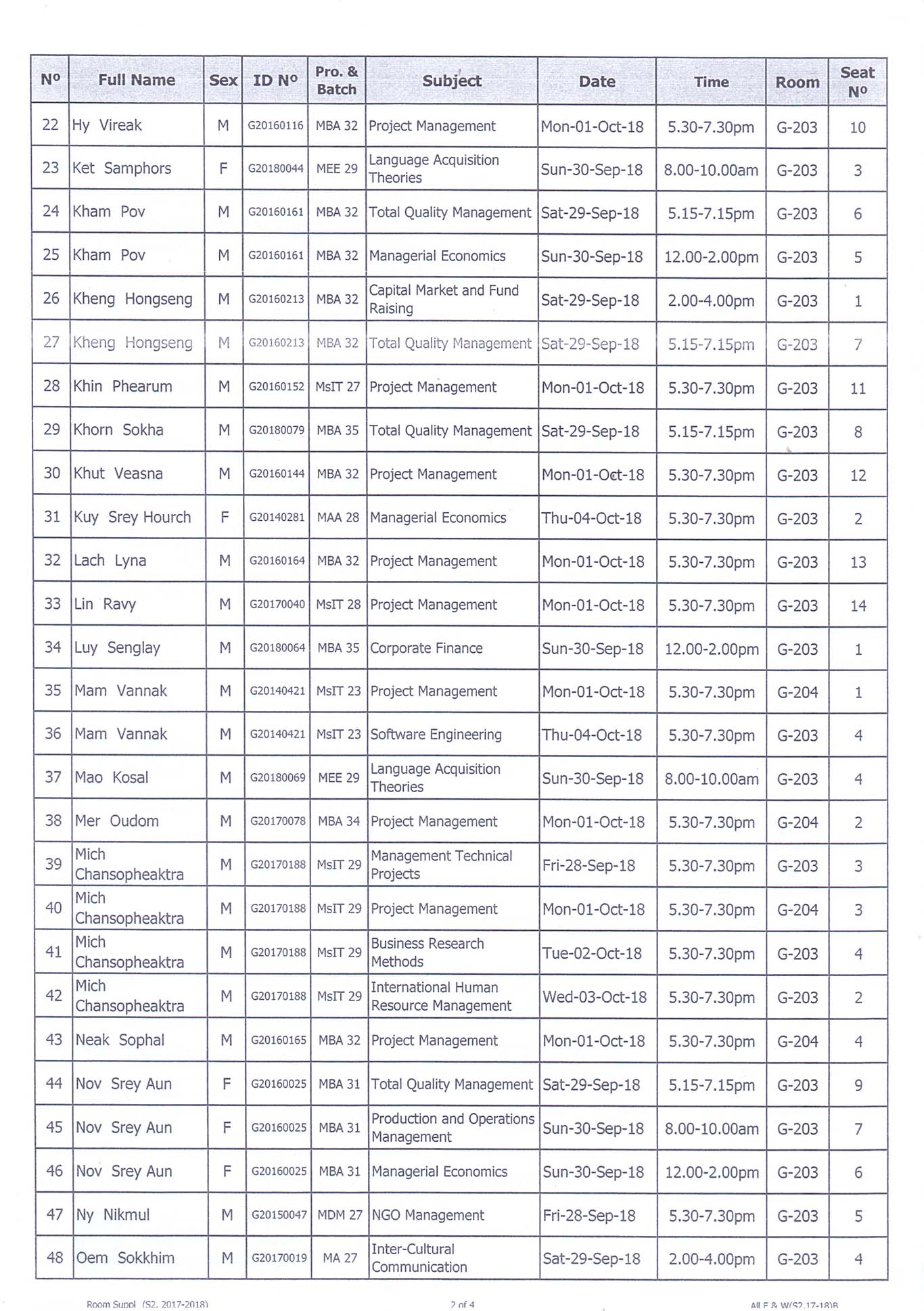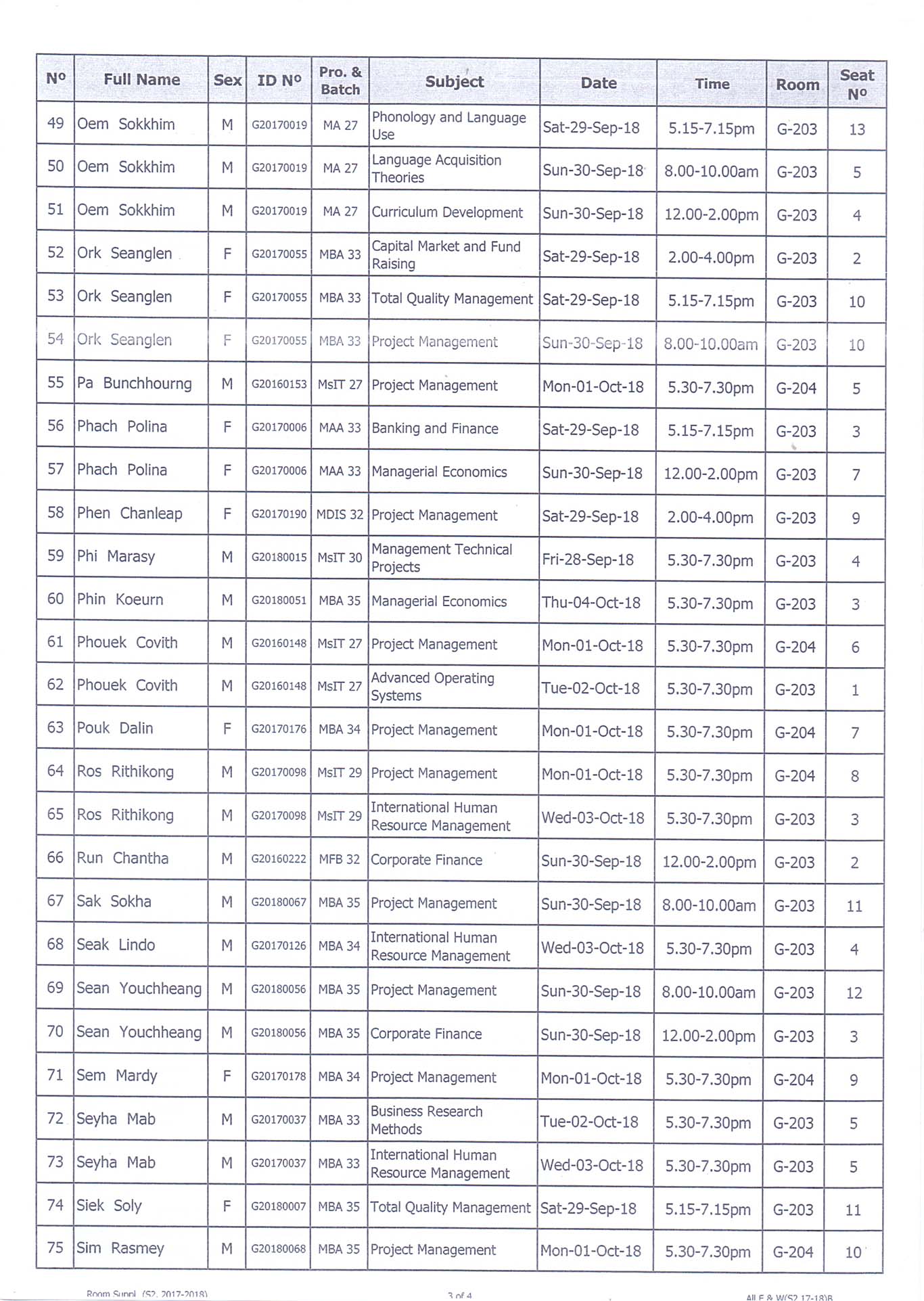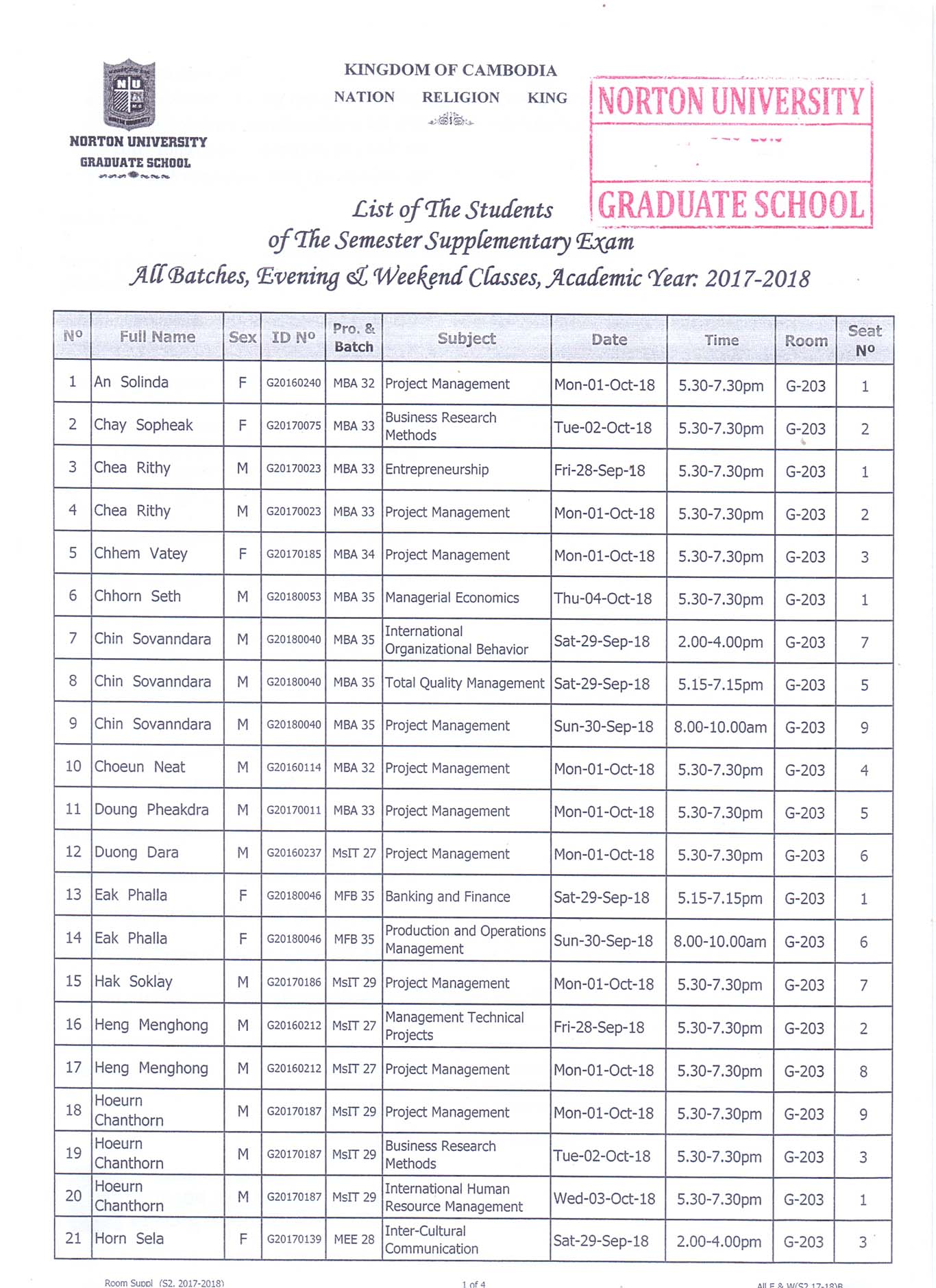 List of the students of the semester supplementary exam all batches, Evening and Weekend Classes, Academic Year 2017 - 2018