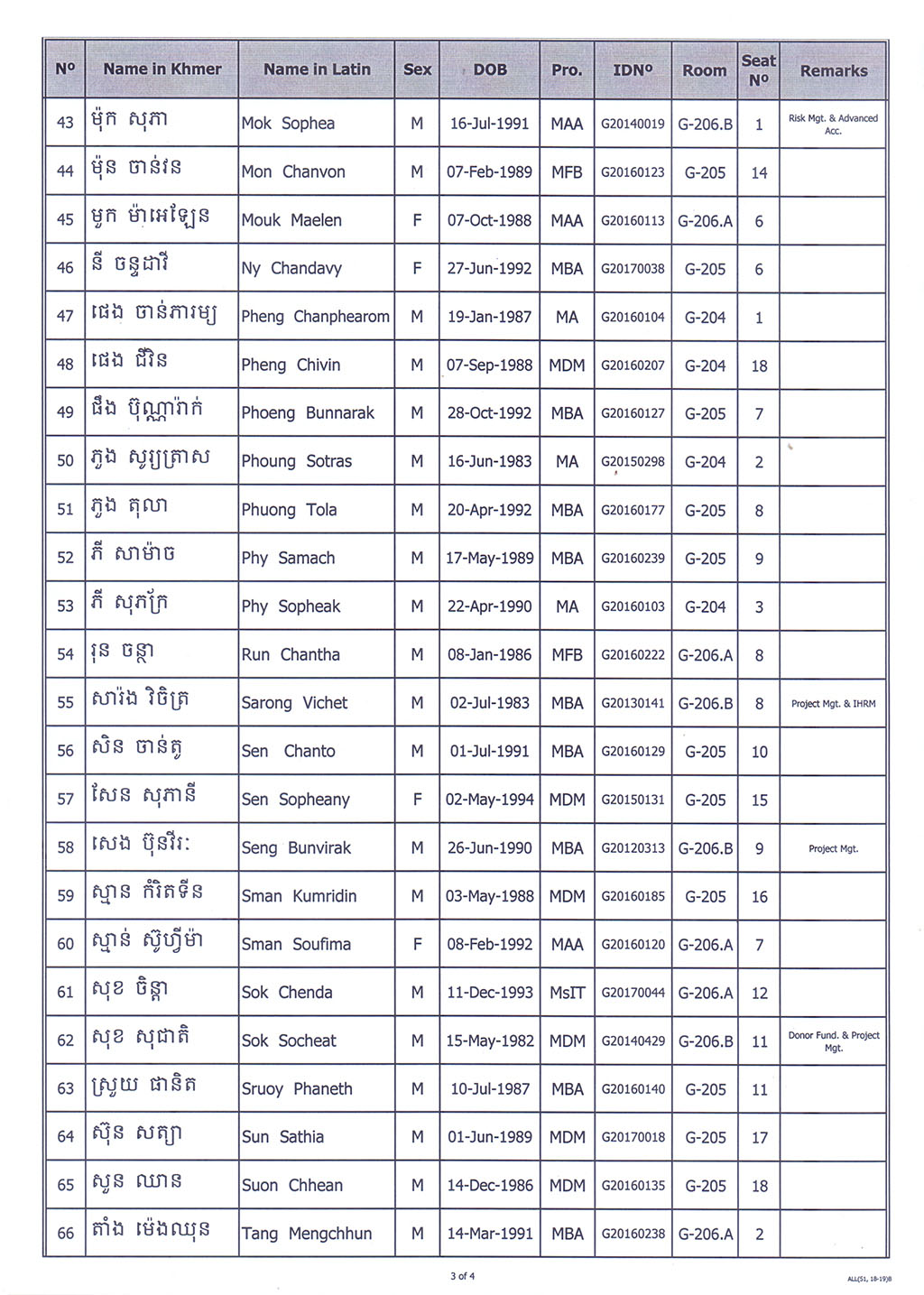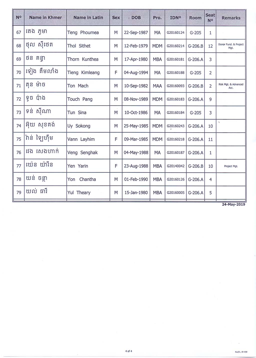 List of the state exam academic year 2018-2019 Semester 1 Date: 25 May 2019, Time: 2:00 - 5:00PM