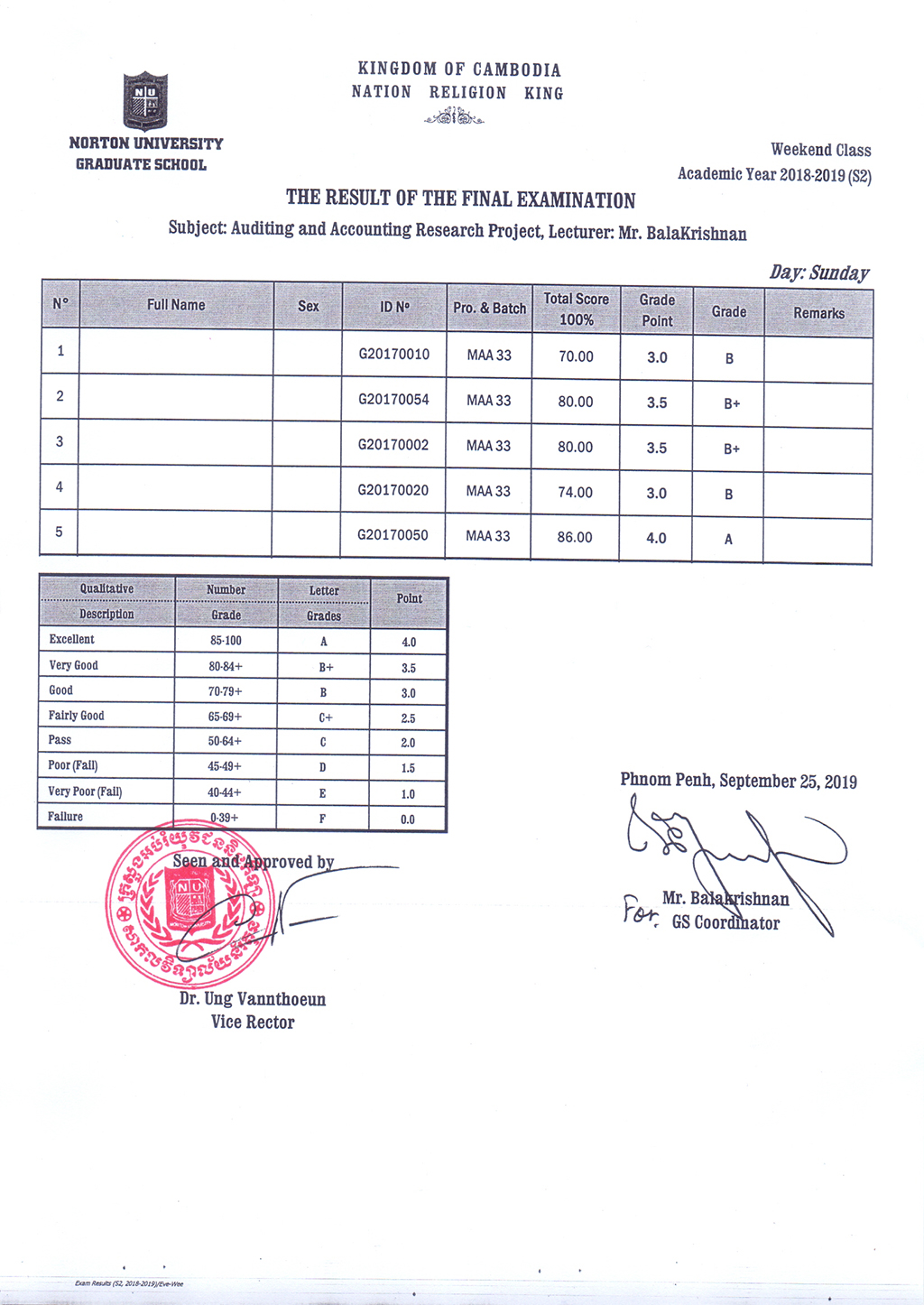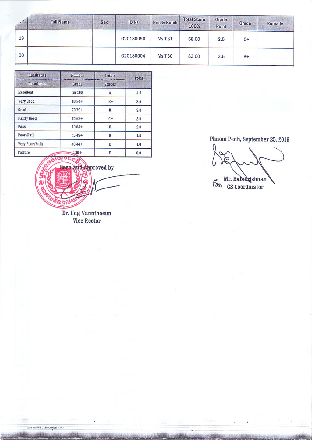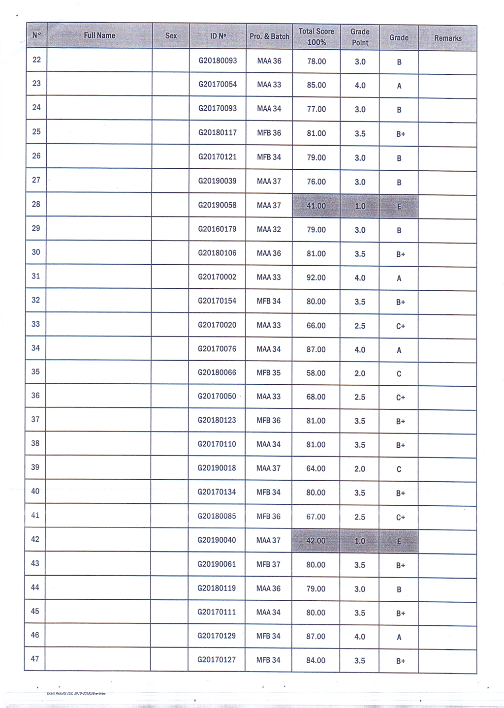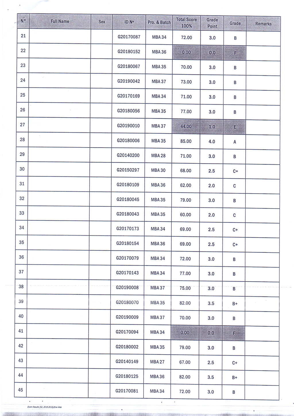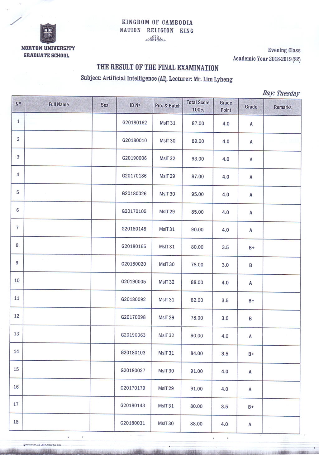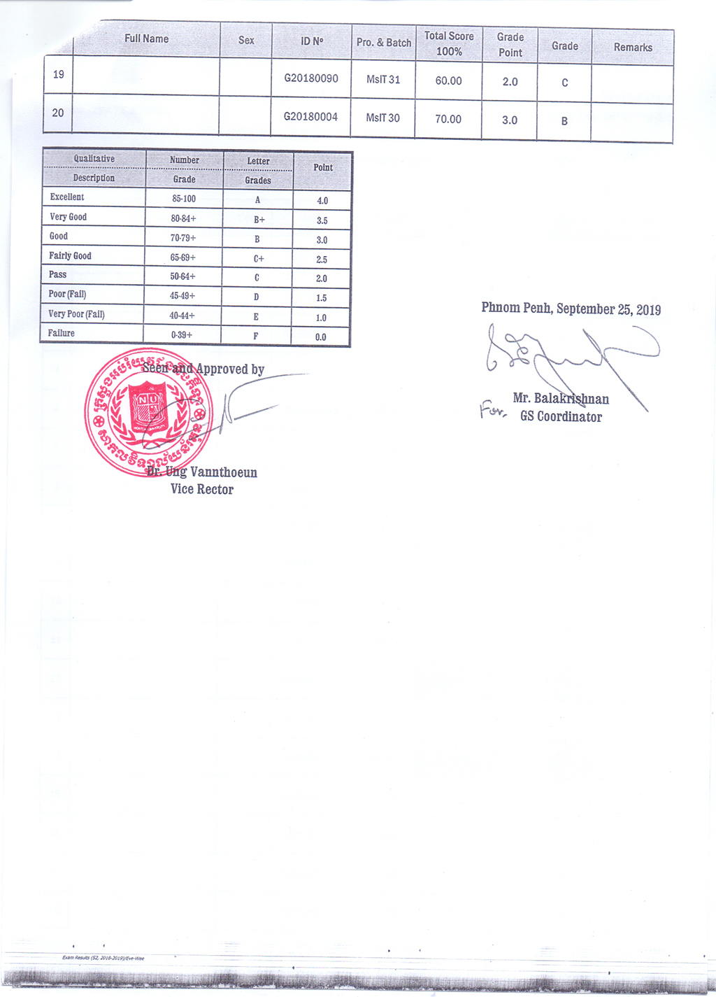 The Result of the Final Examination Semester 2 Academic Year 2018 - 2019 Evening and Weekend Classes