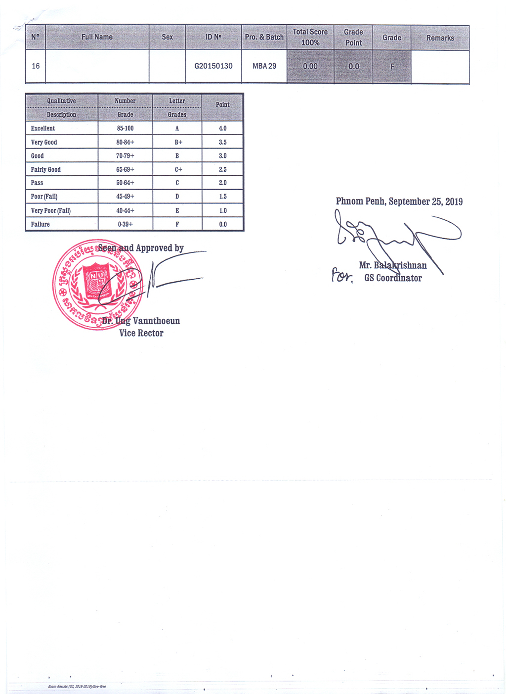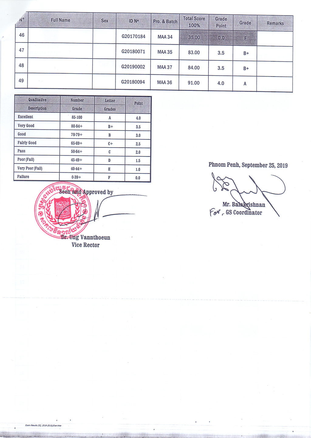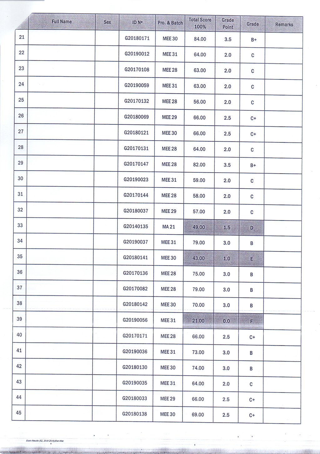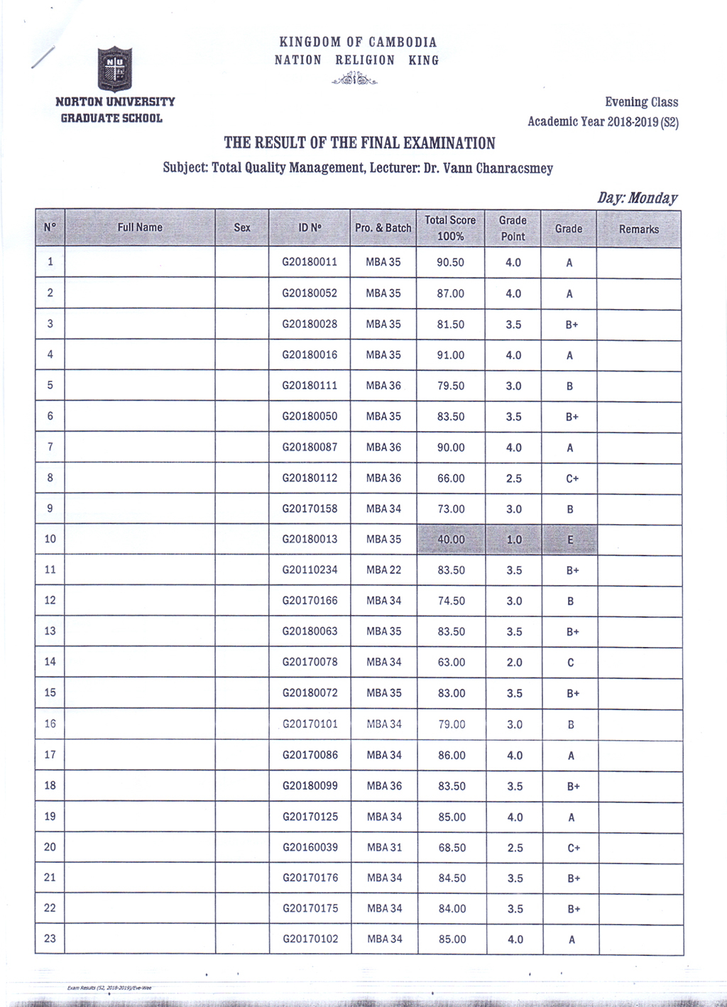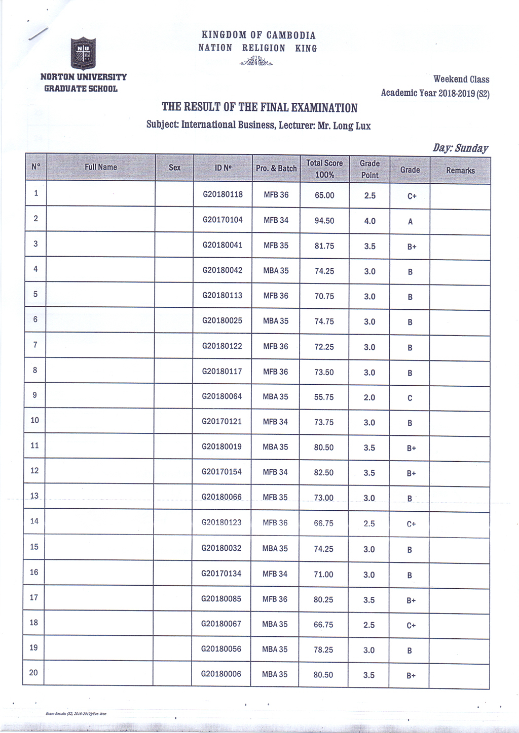 The Result of the Final Examination Semester 2 Academic Year 2018 - 2019 Evening and Weekend Classes