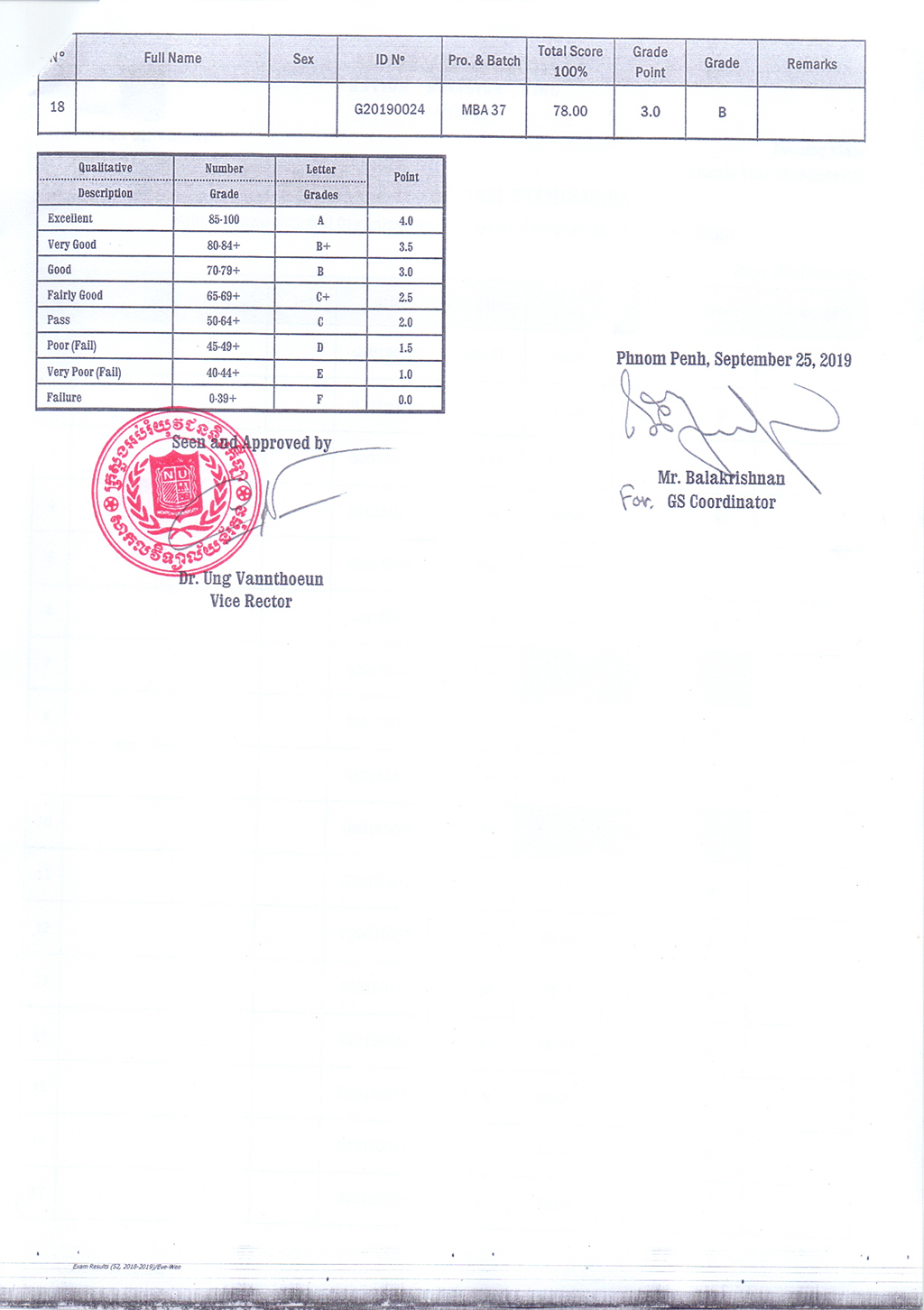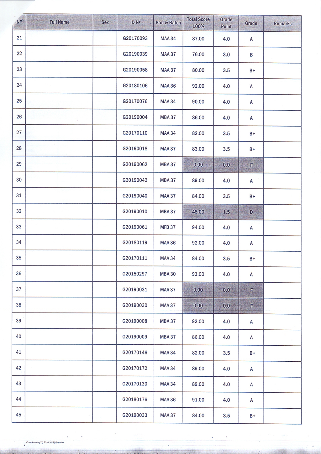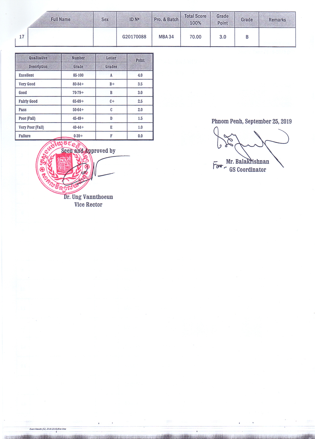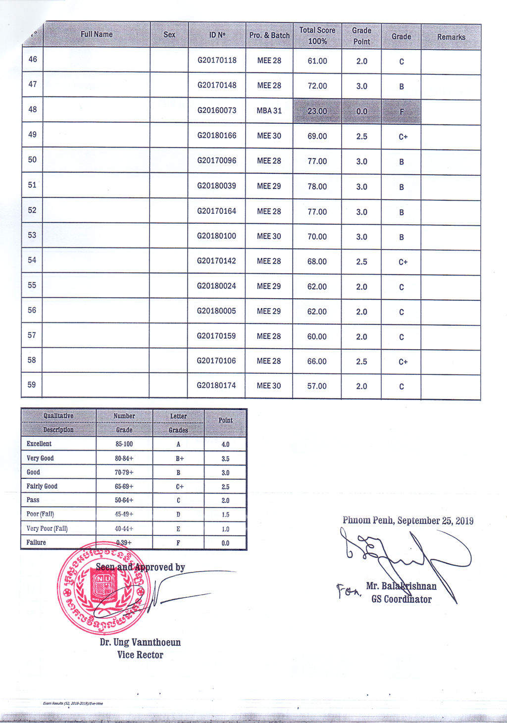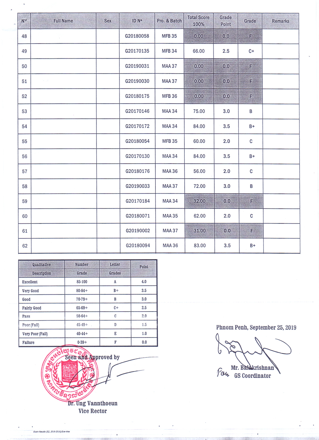 The Result of the Final Examination Semester 2 Academic Year 2018 - 2019 Evening and Weekend Classes