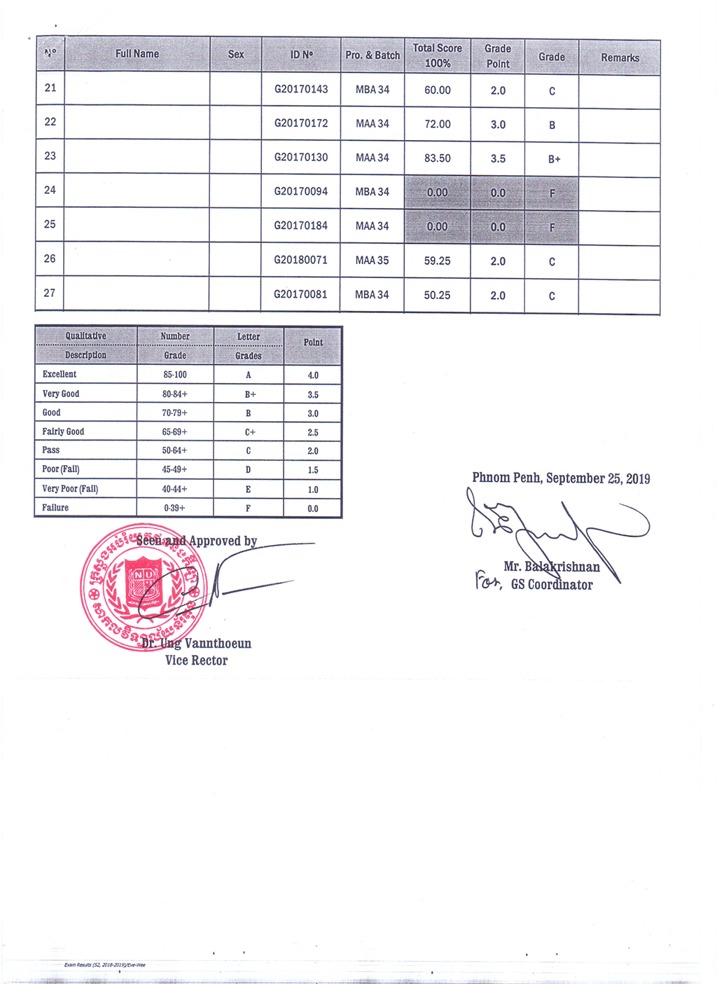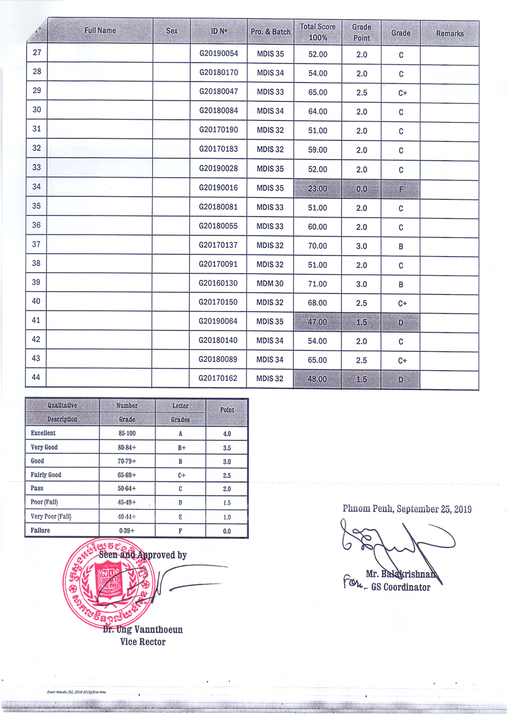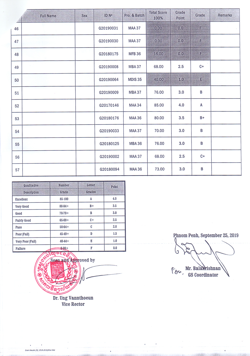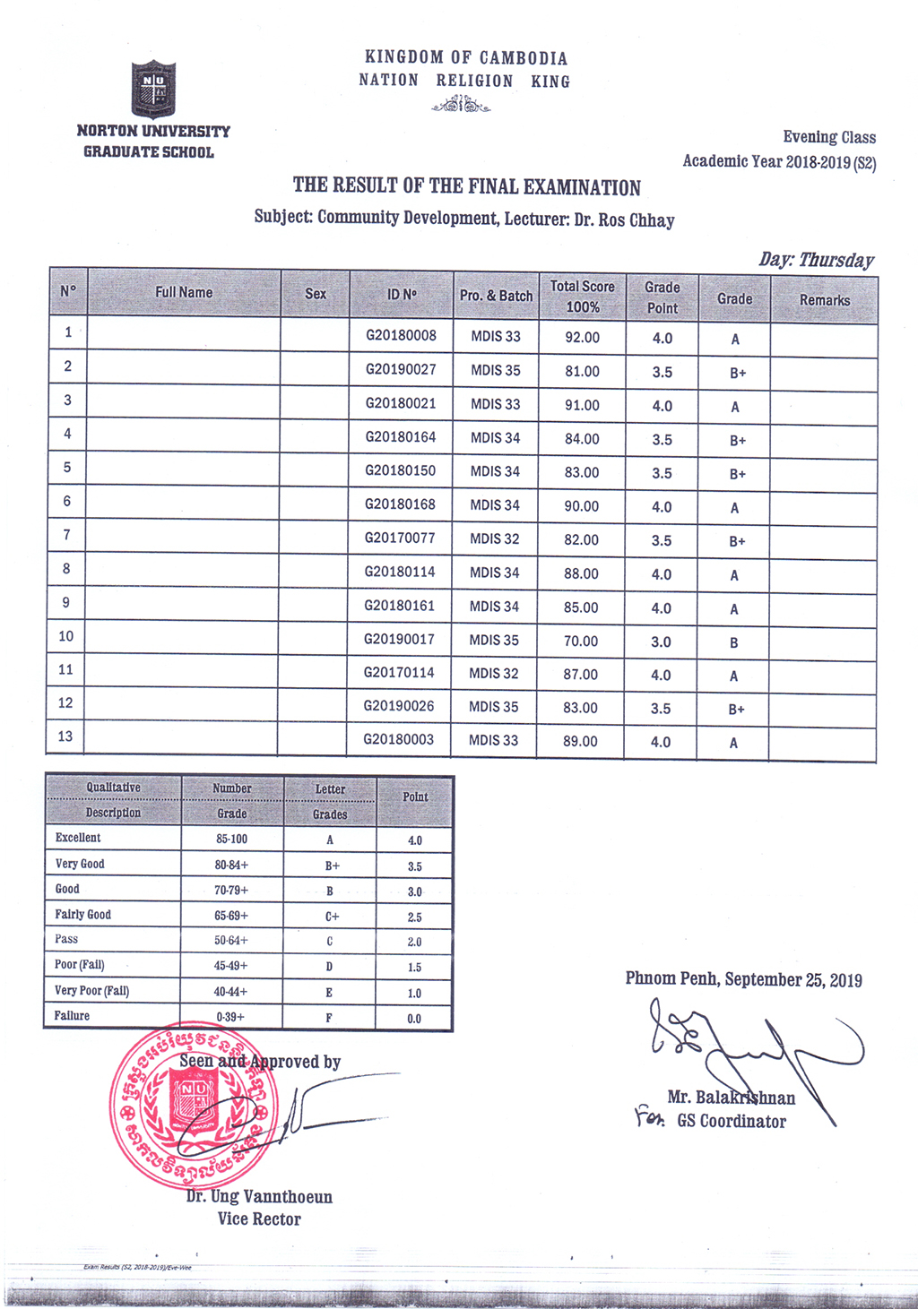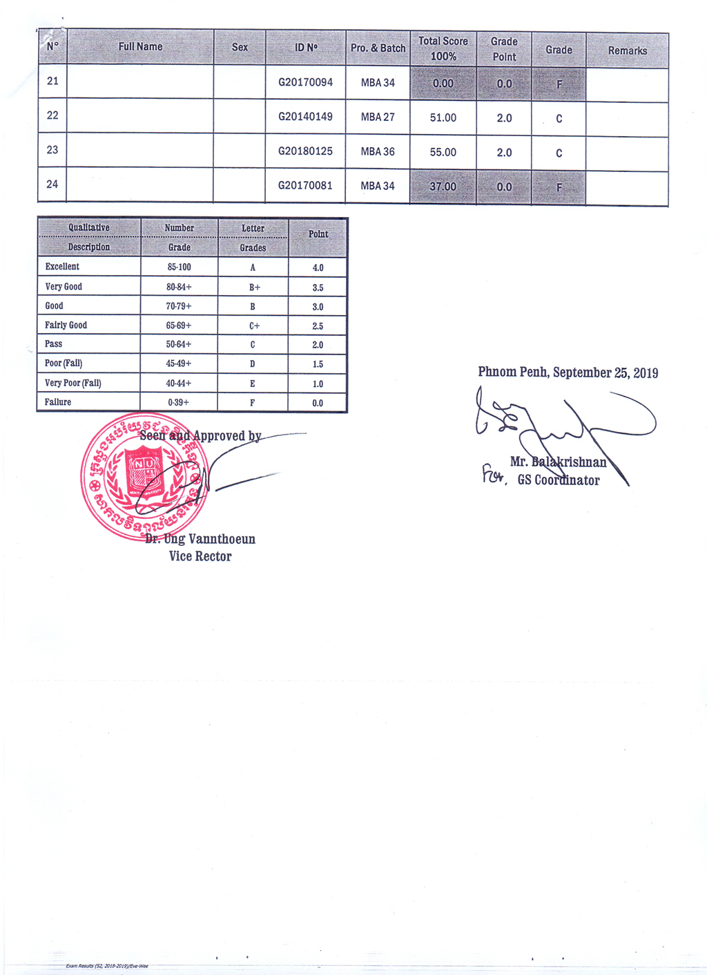 The Result of the Final Examination Semester 2 Academic Year 2018 - 2019 Evening and Weekend Classes