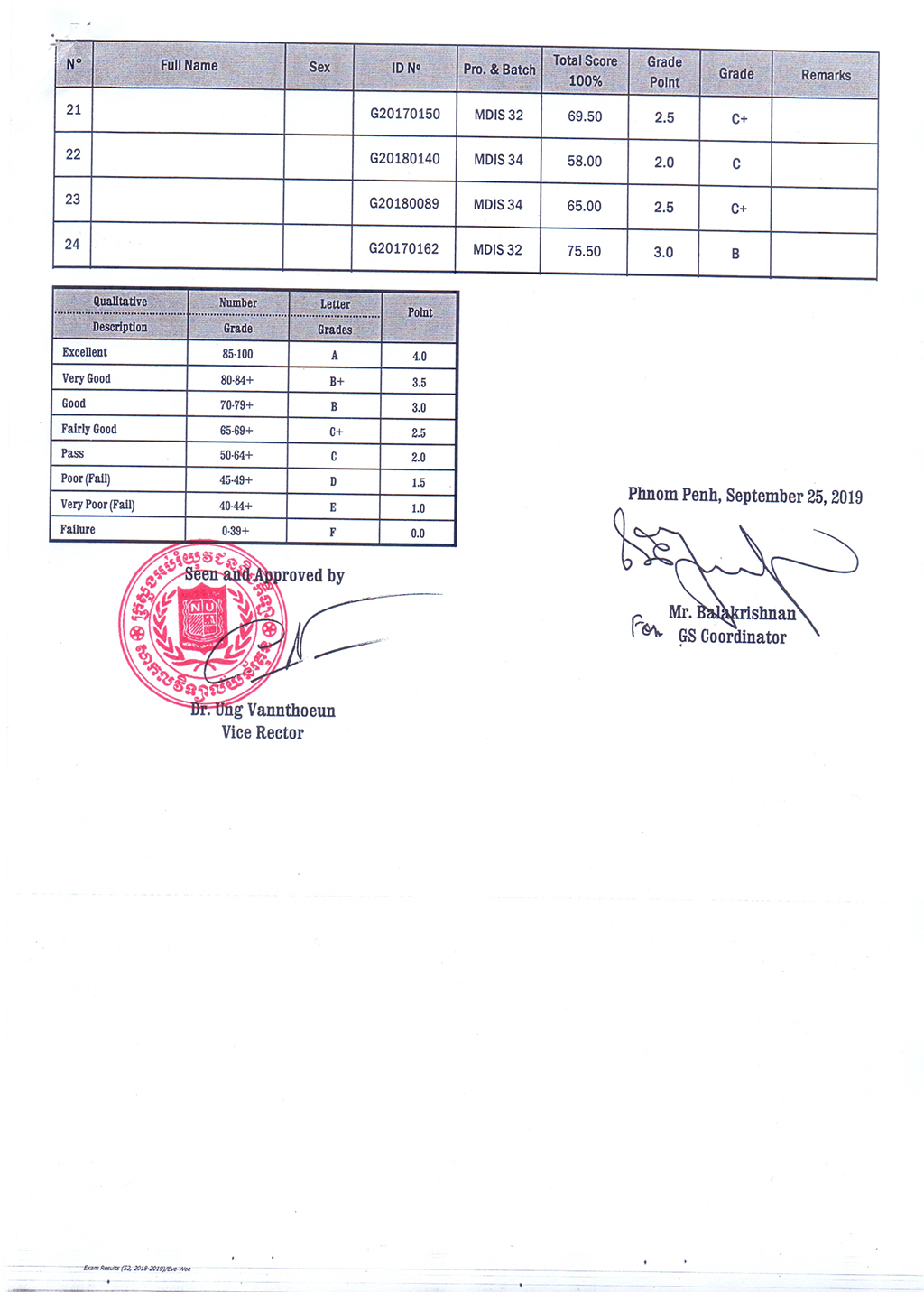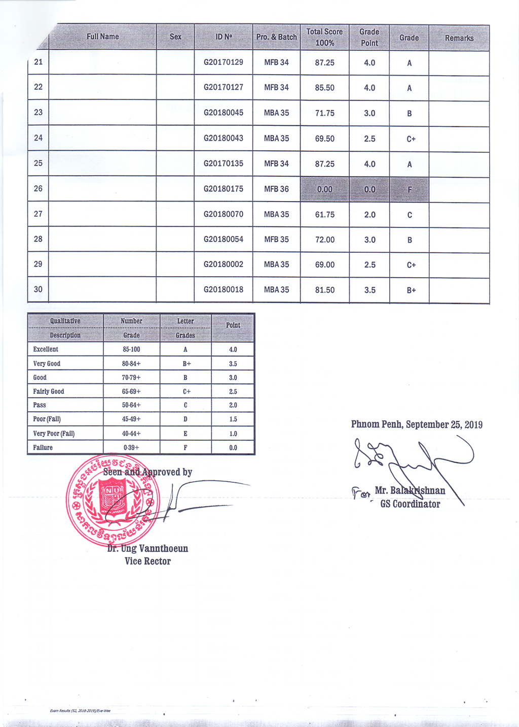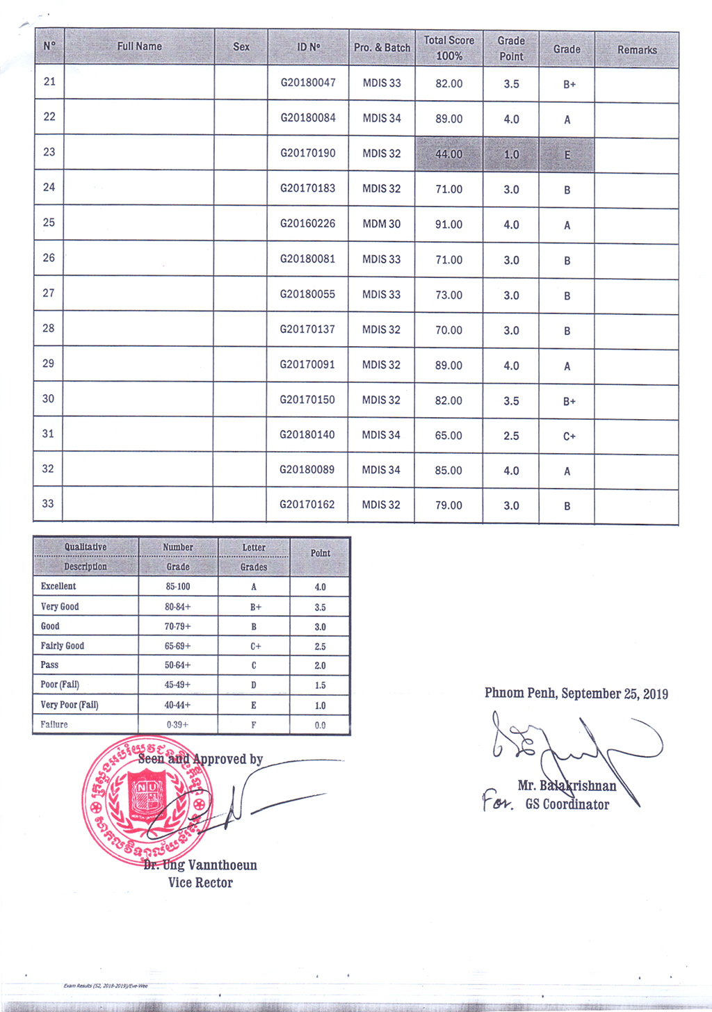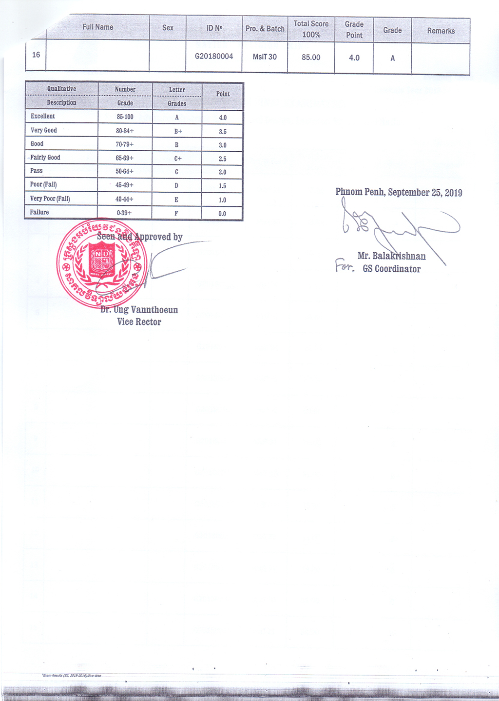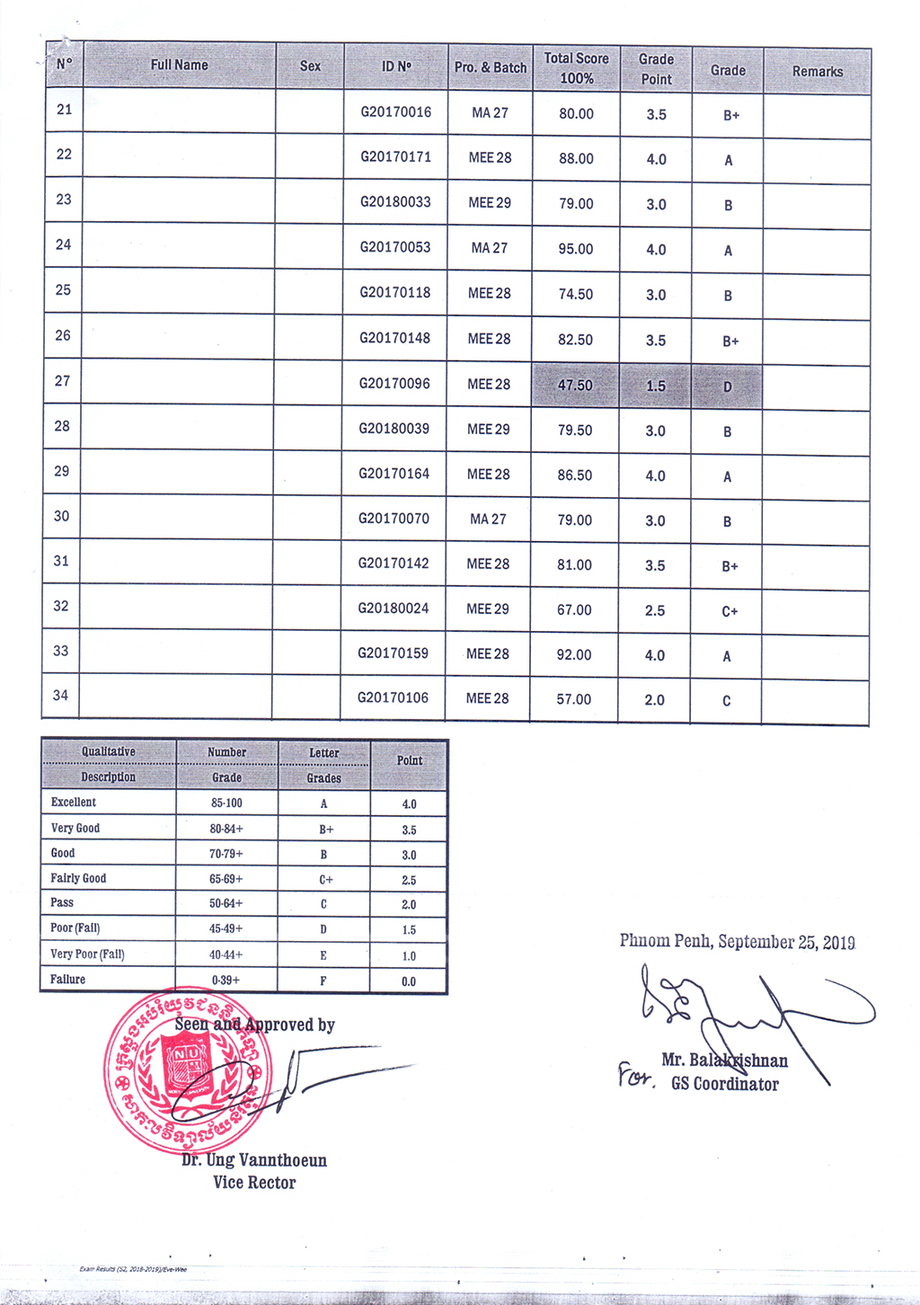 The Result of the Final Examination Semester 2 Academic Year 2018 - 2019 Evening and Weekend Classes