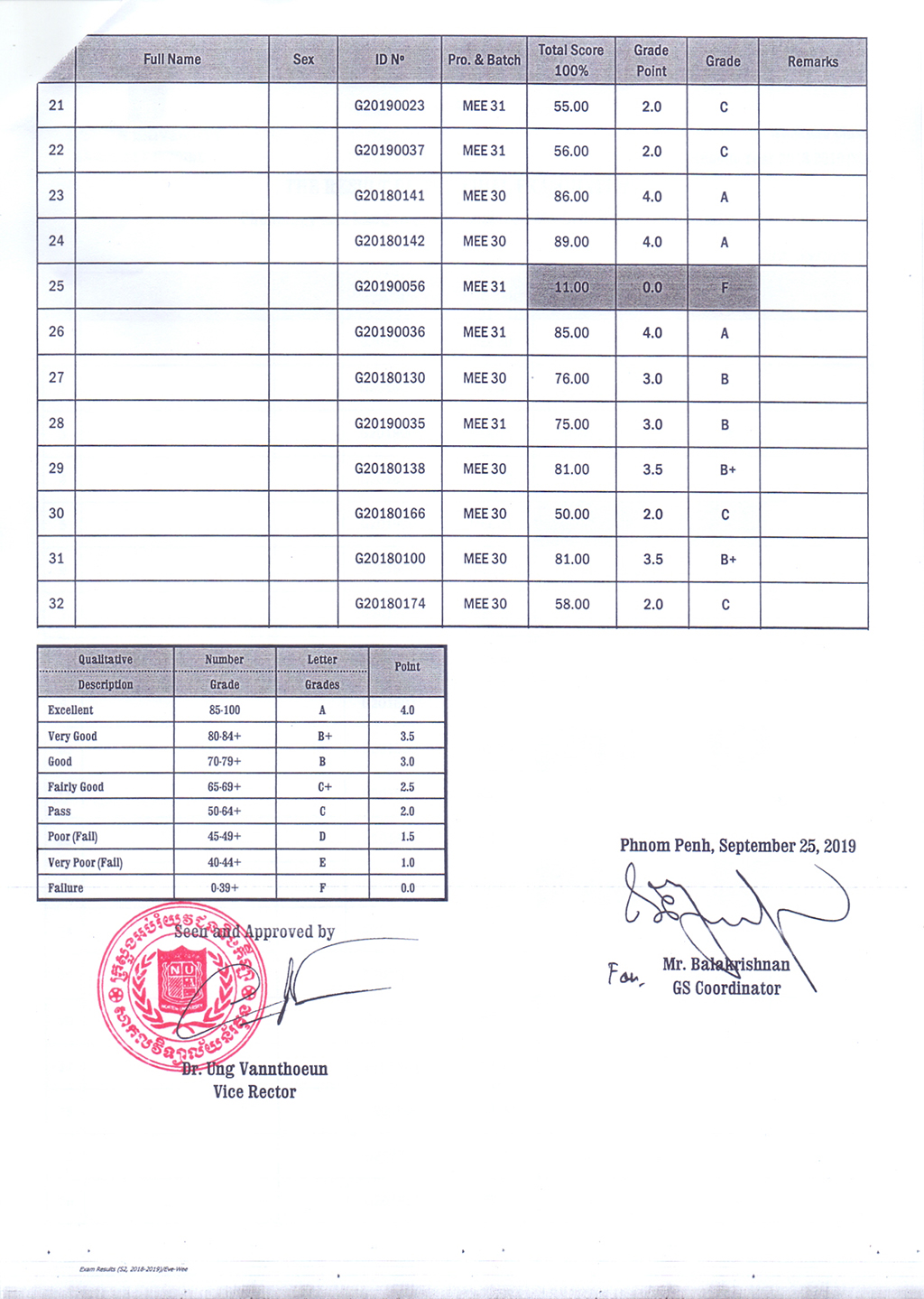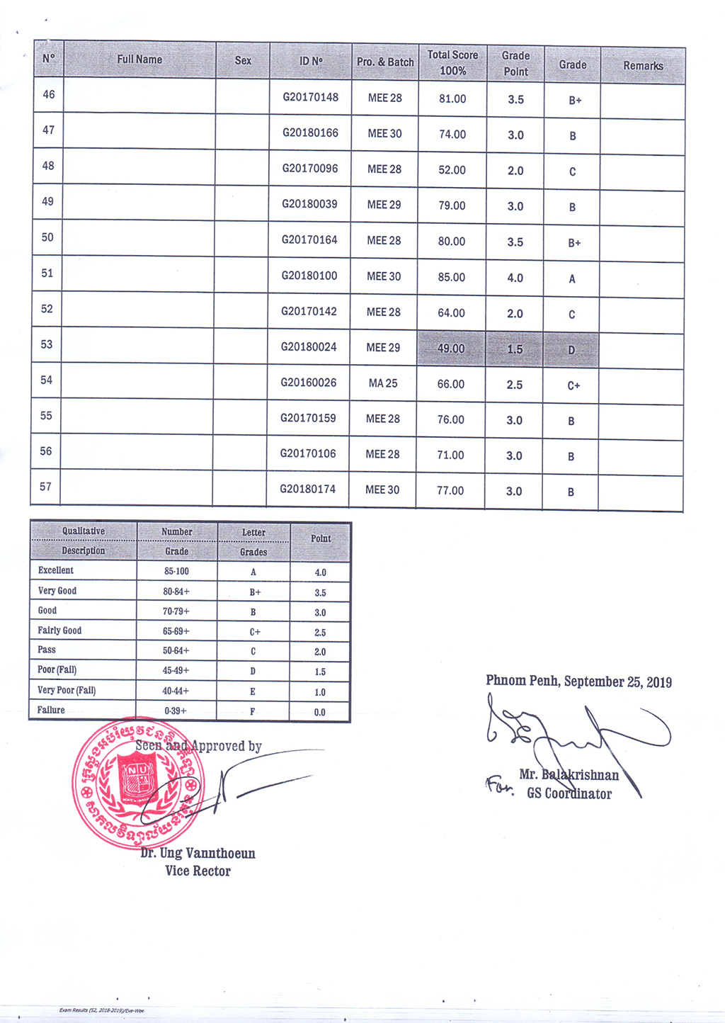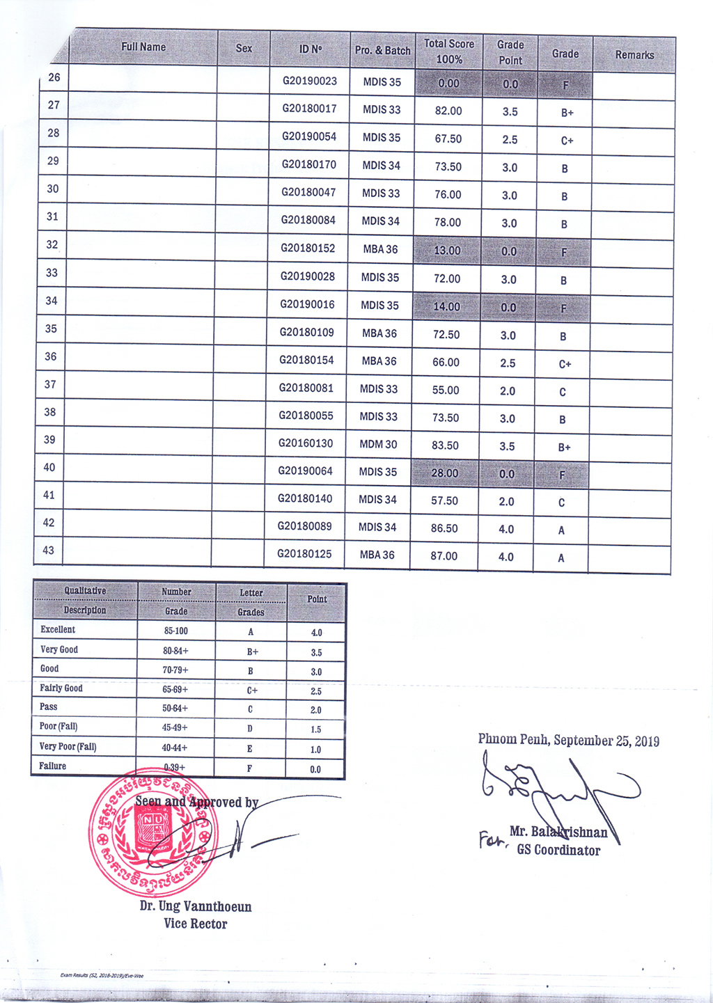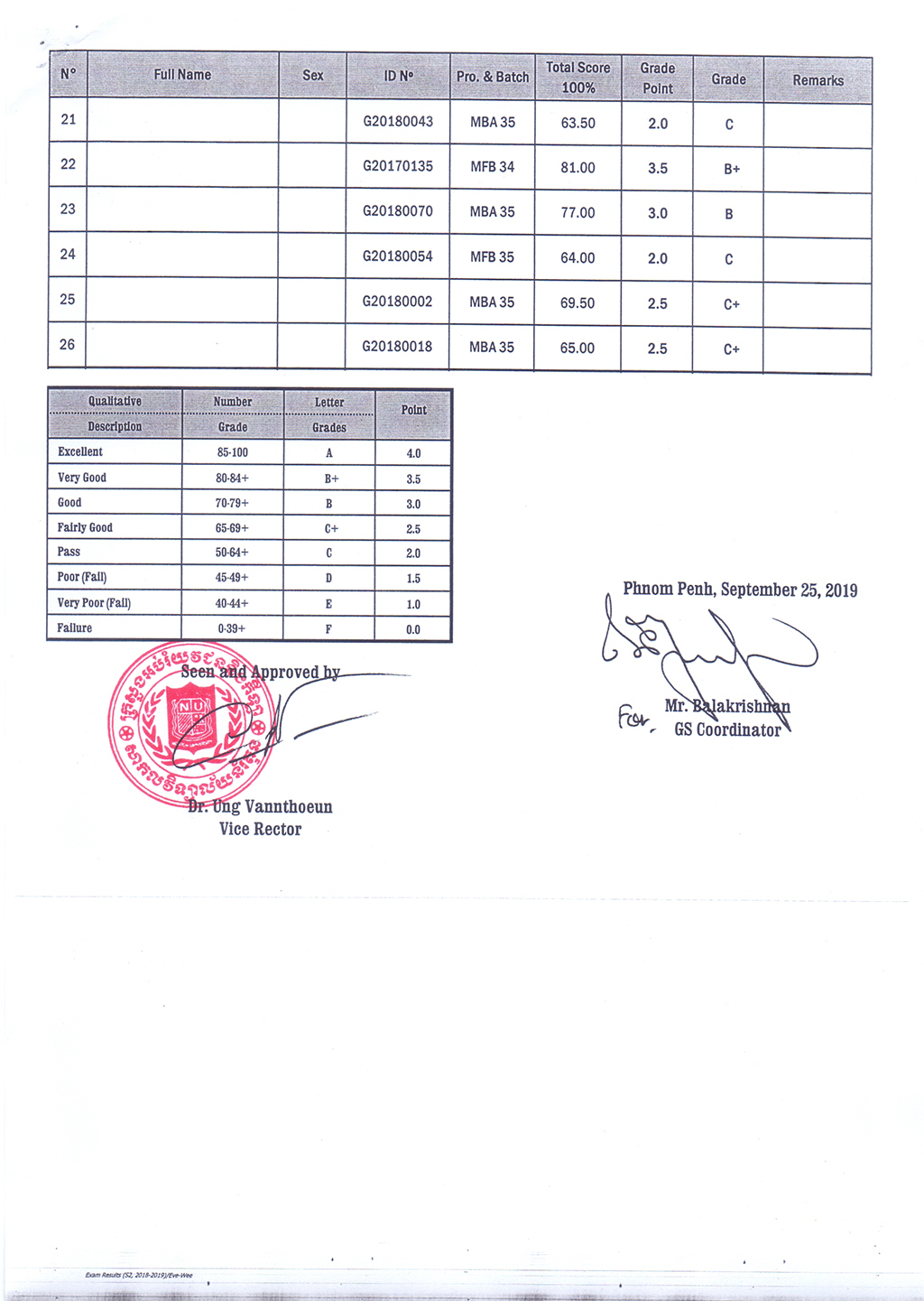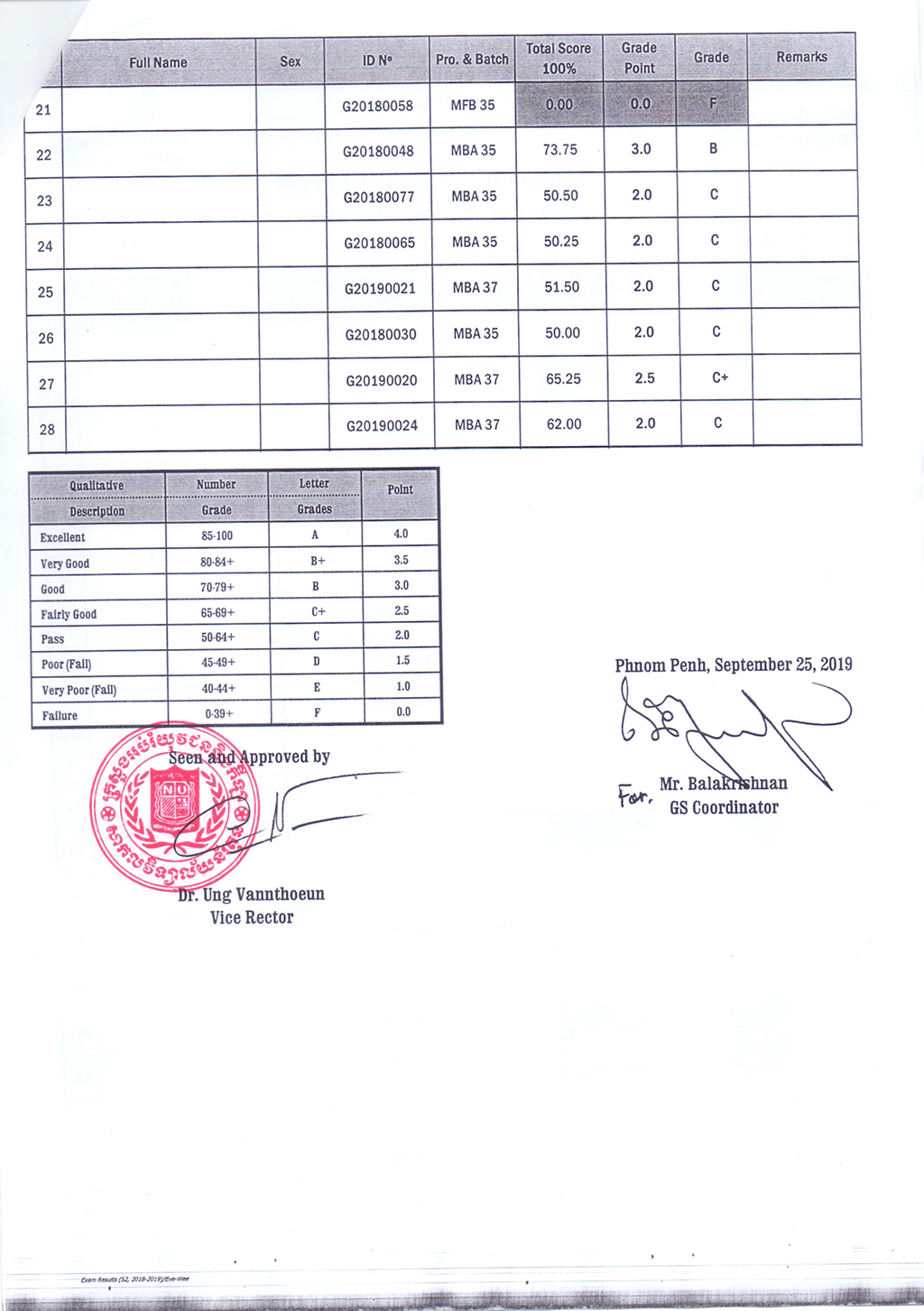 The Result of the Final Examination Semester 2 Academic Year 2018 - 2019 Evening and Weekend Classes