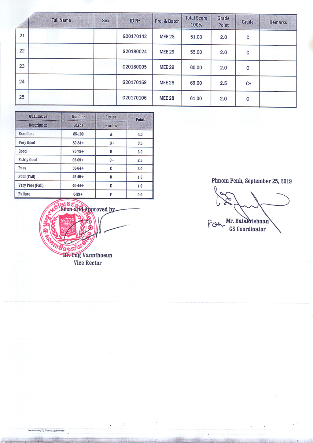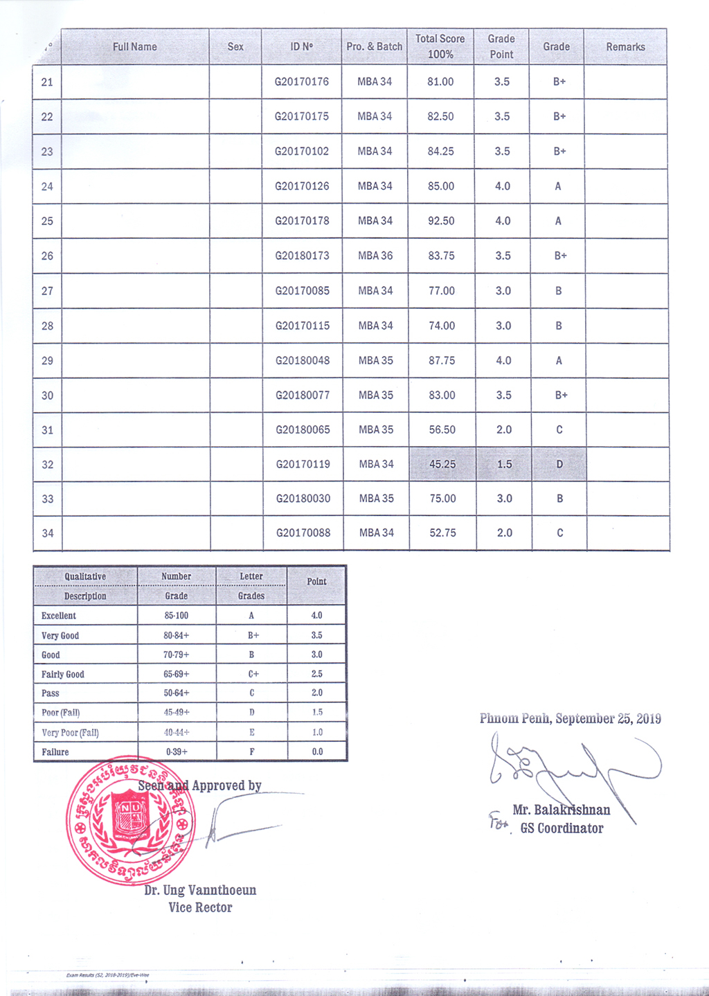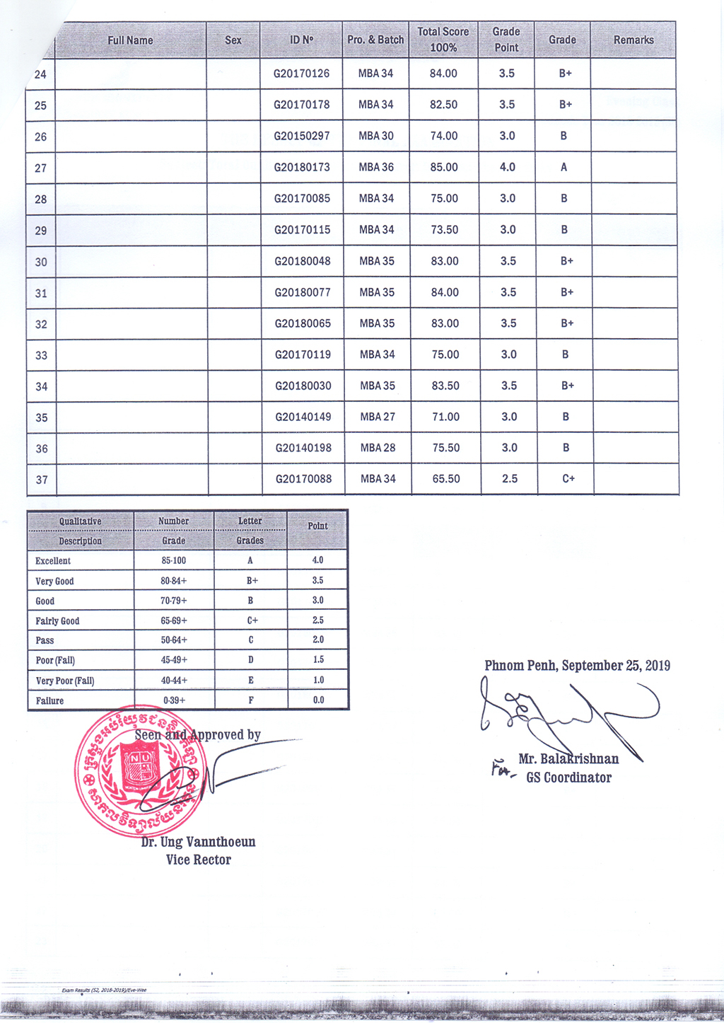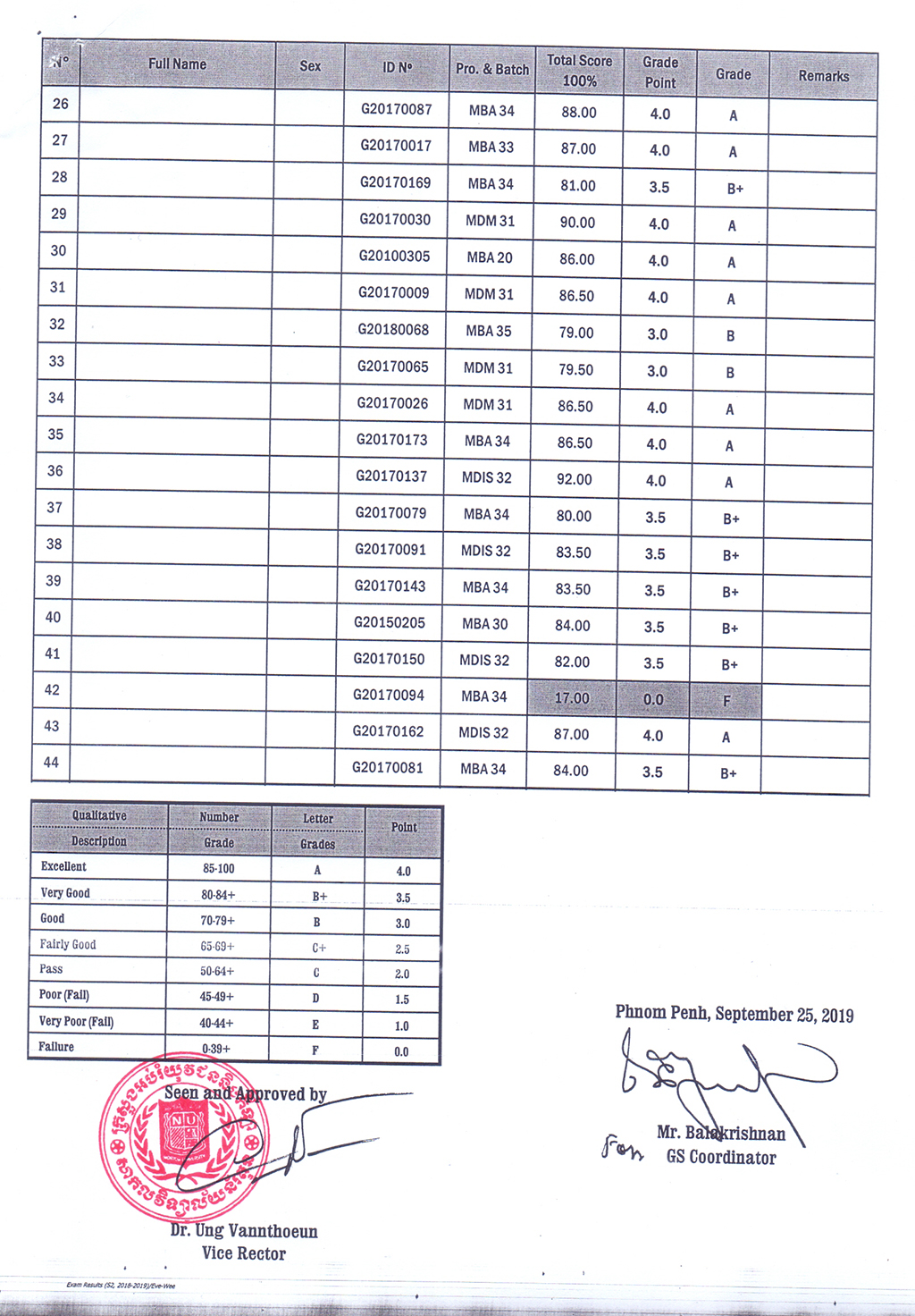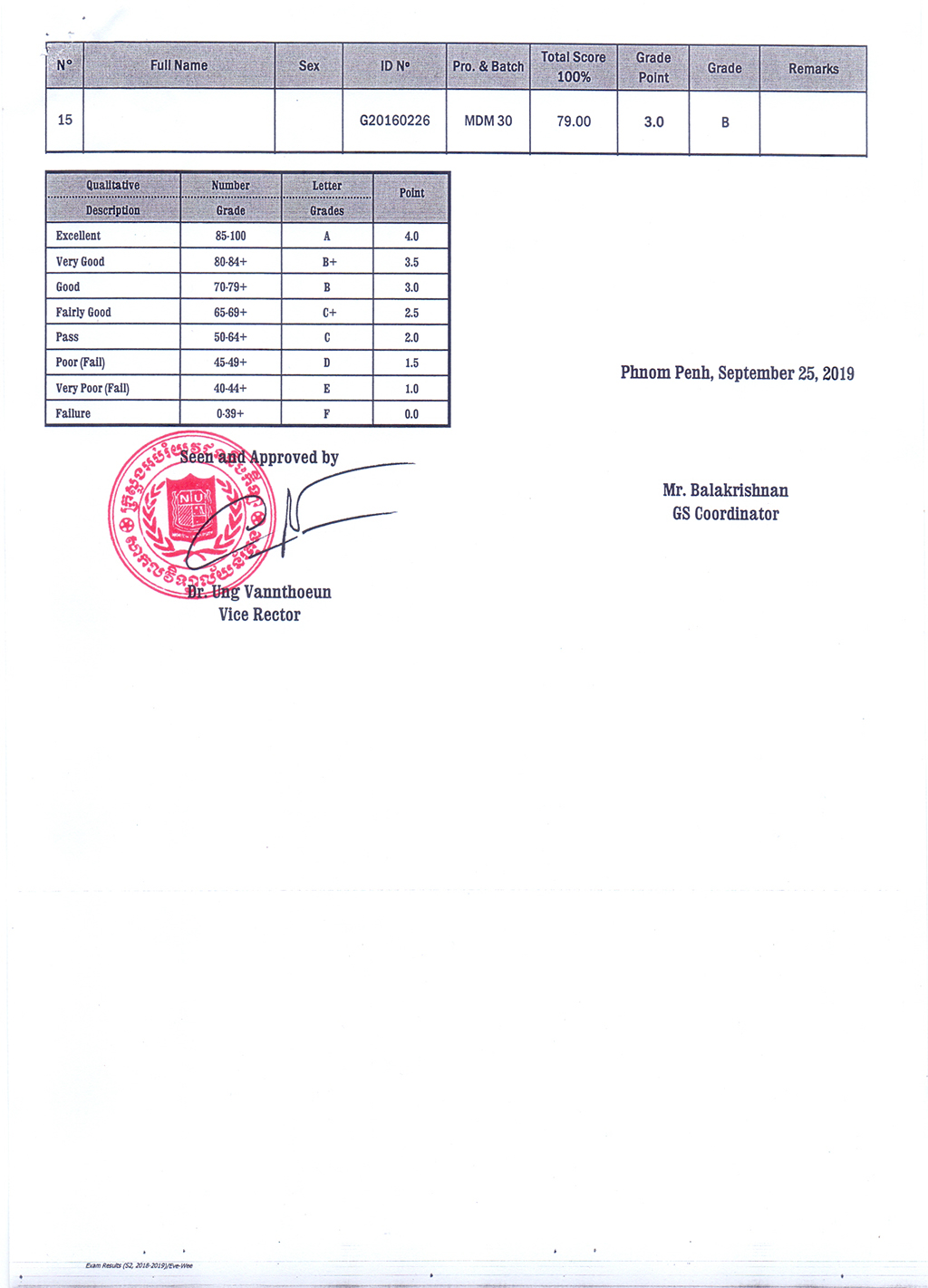 The Result of the Final Examination Semester 2 Academic Year 2018 - 2019 Evening and Weekend Classes