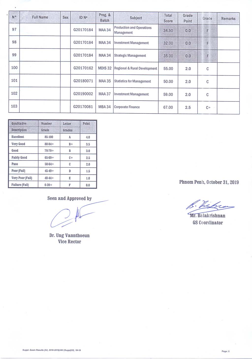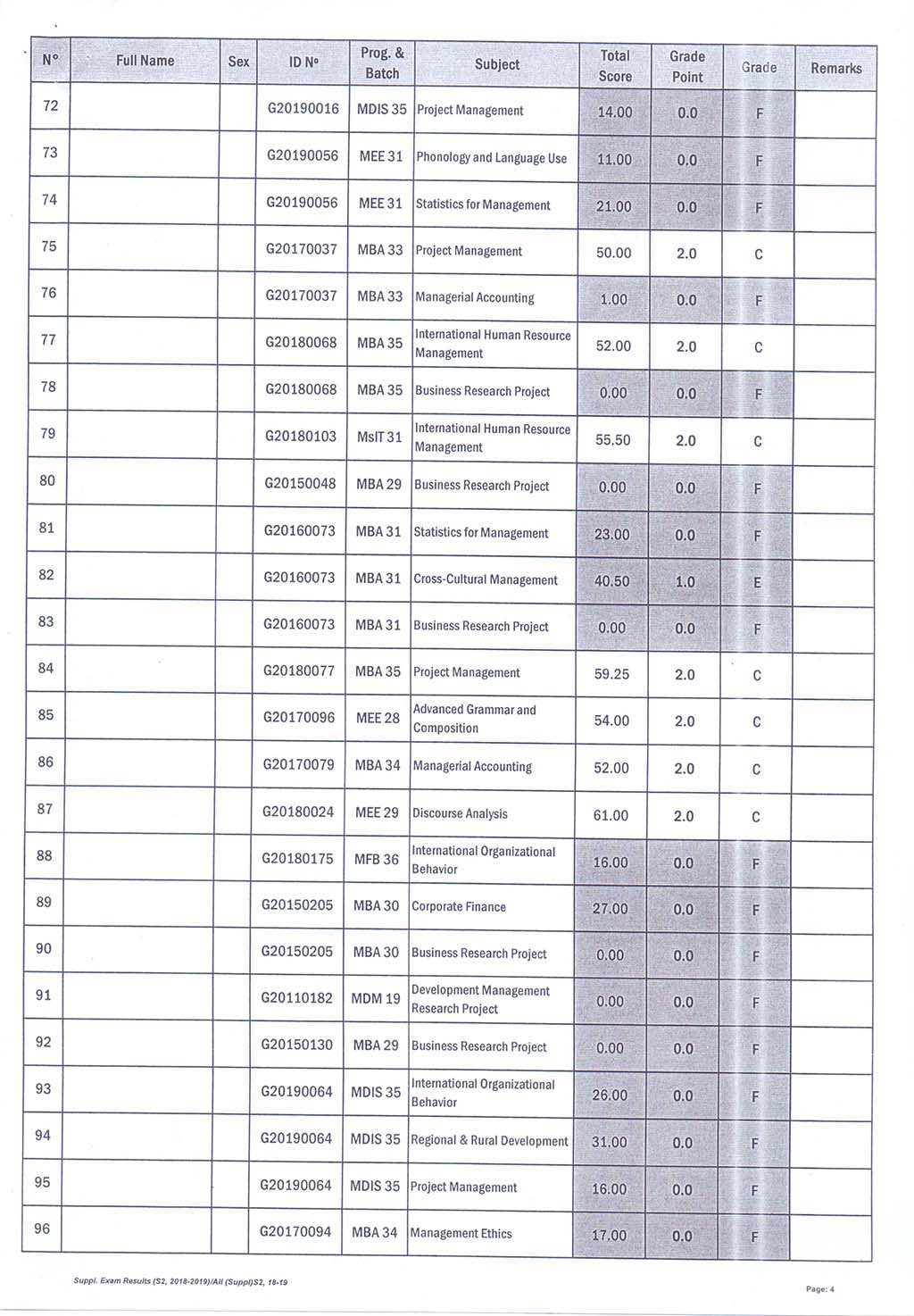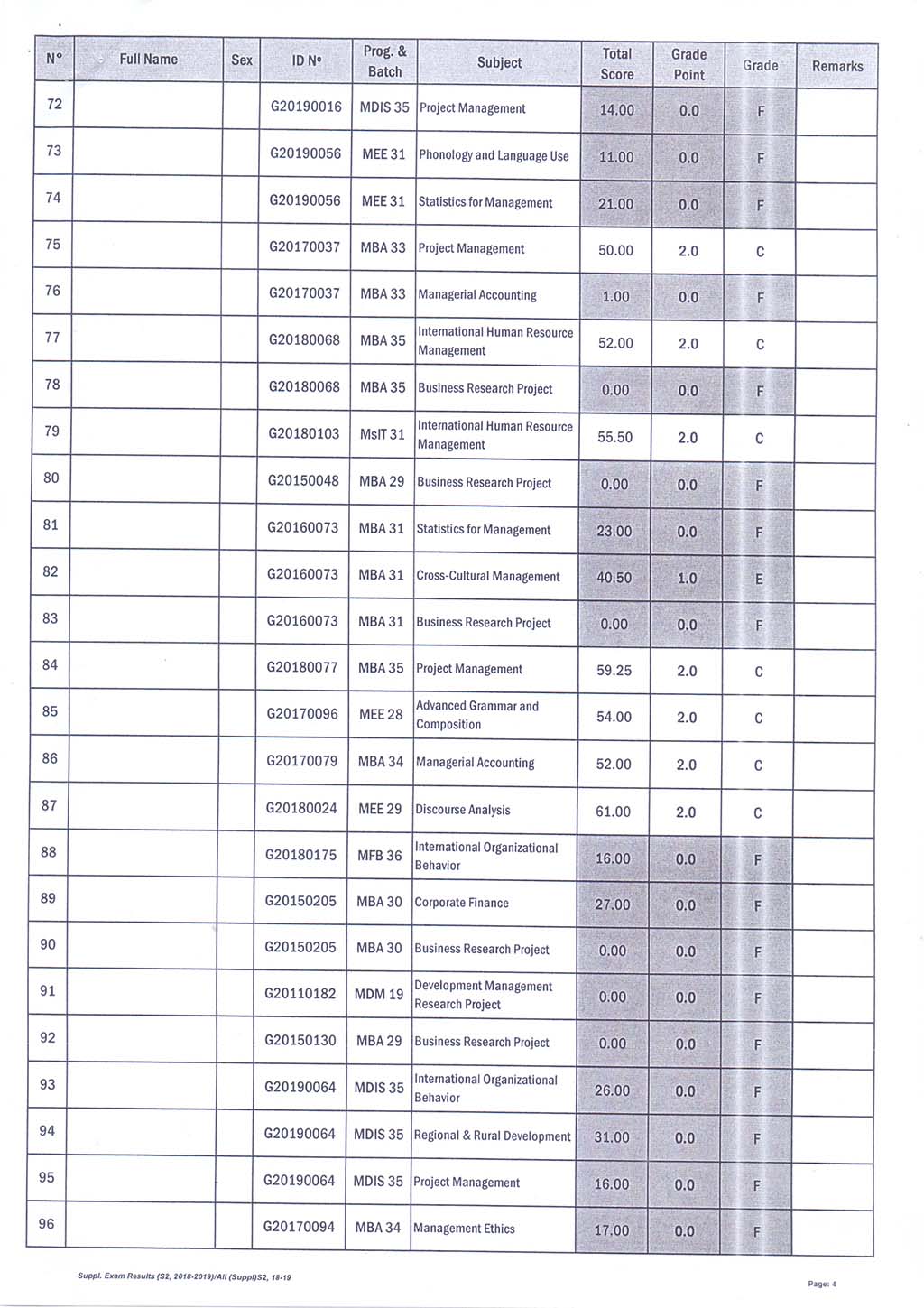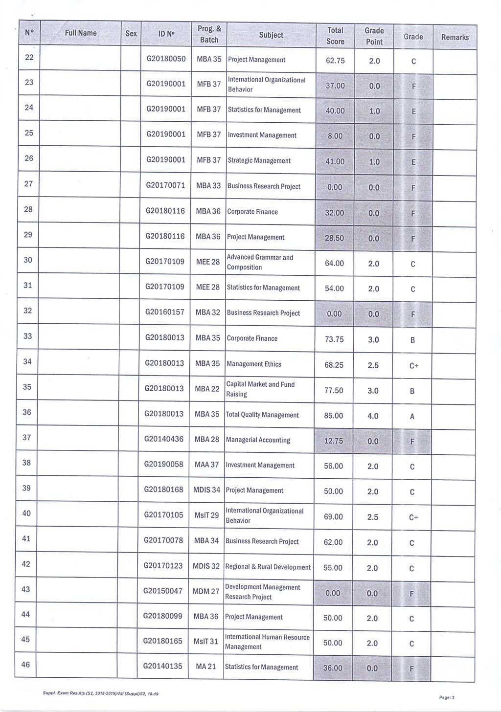The result of The Supplementary Examination Evening and Weekend Class, Academic Year 2018-2019 Semester 2